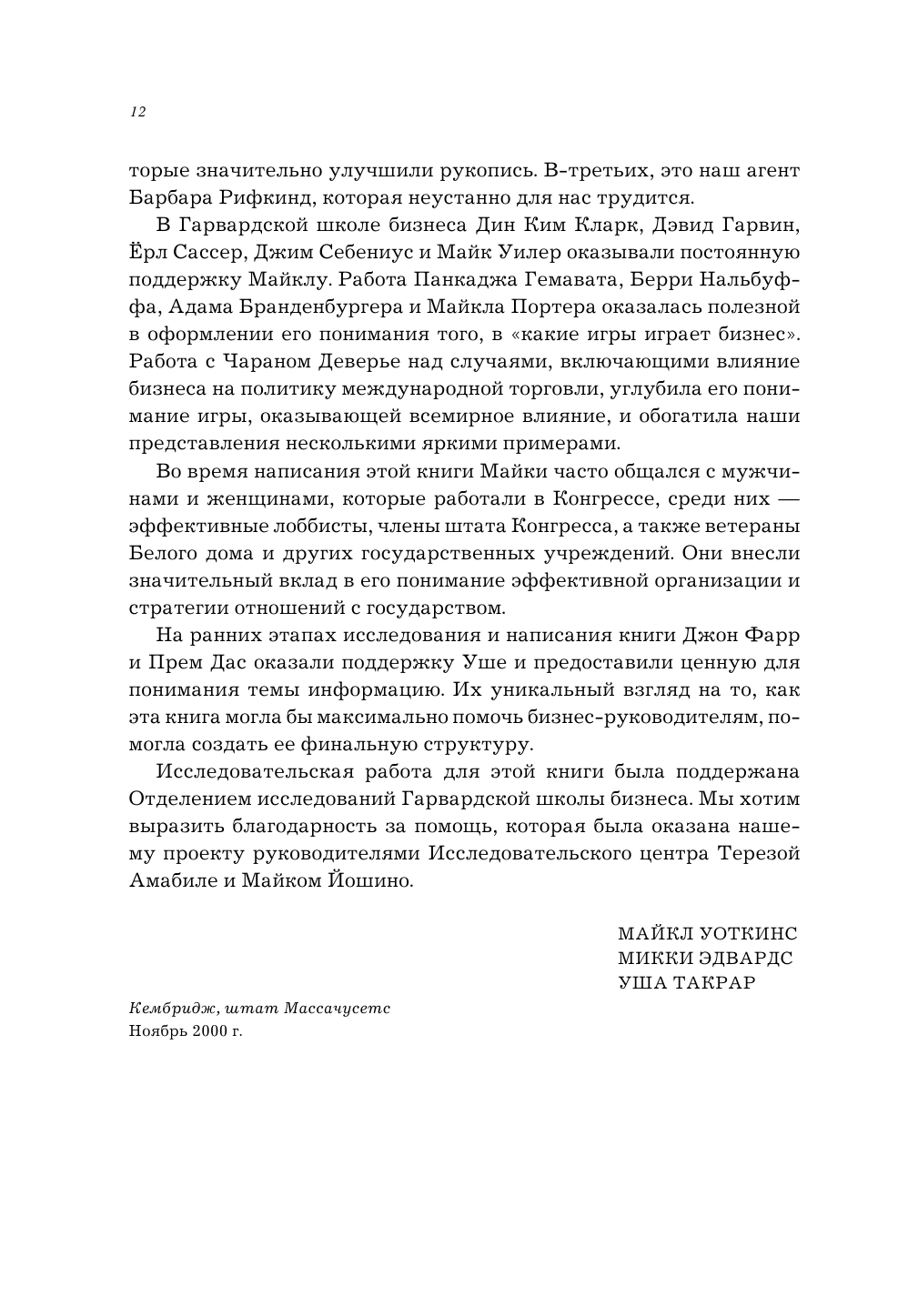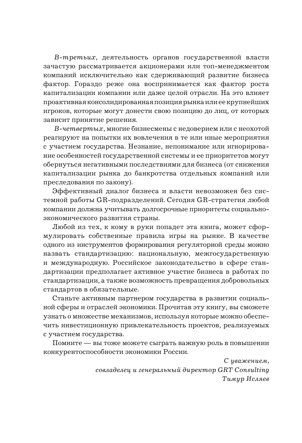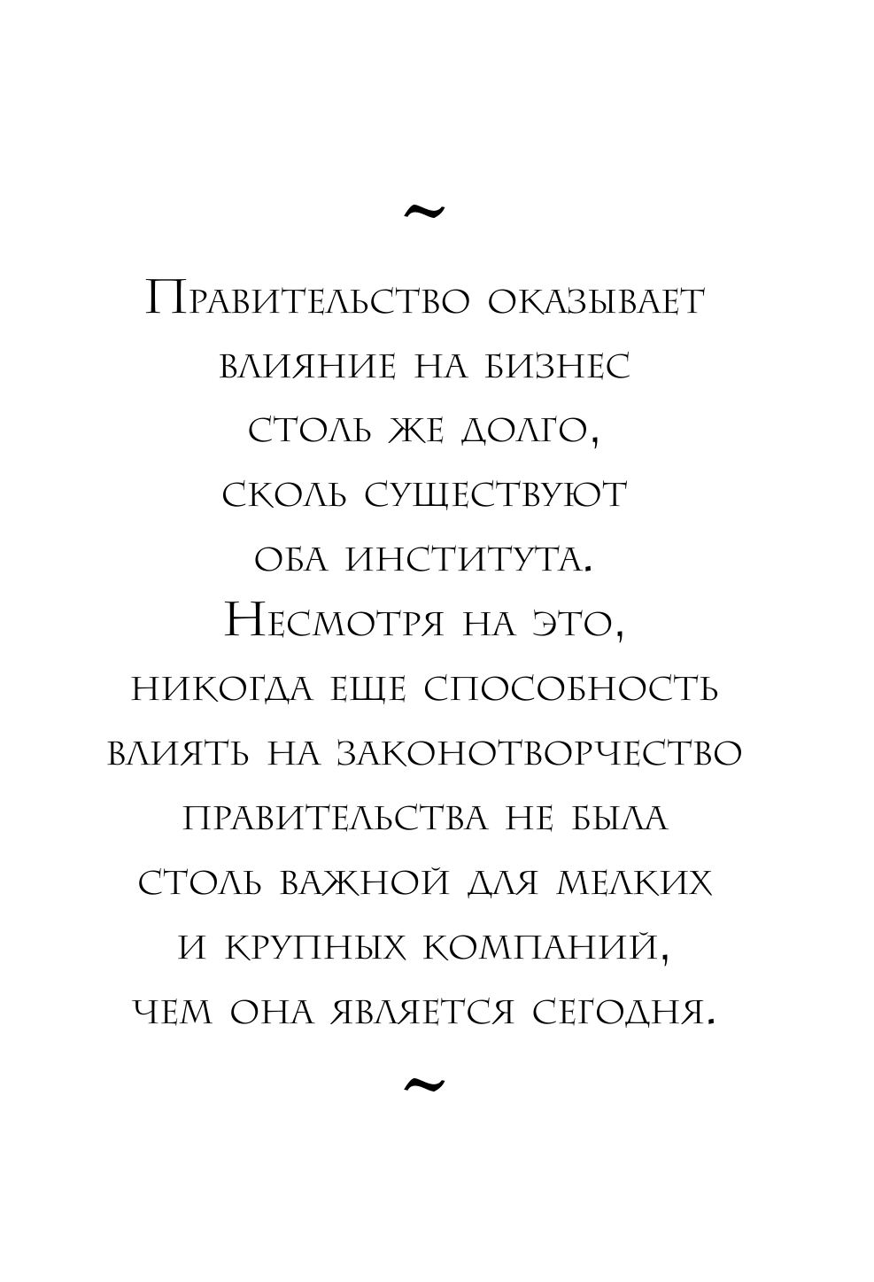 В книге подробно описаны бизнес-стратегии построения взаимоотношений с государством: от внутренней организации GR- отдела компании до способов внешнего воздействия на органы исполнительной и законодательной власти. Авторы соединили в ней свой опыт работы в госструктурах с опытом владельцев крупных корпораций. Здесь на примере GR-стратегий таких компаний, как Microsoft, Intel, General Electric, Disney, вы сможете выбрать выгодные для себя тактики выстраивания отношений с государством и избежать типичных ошибок.