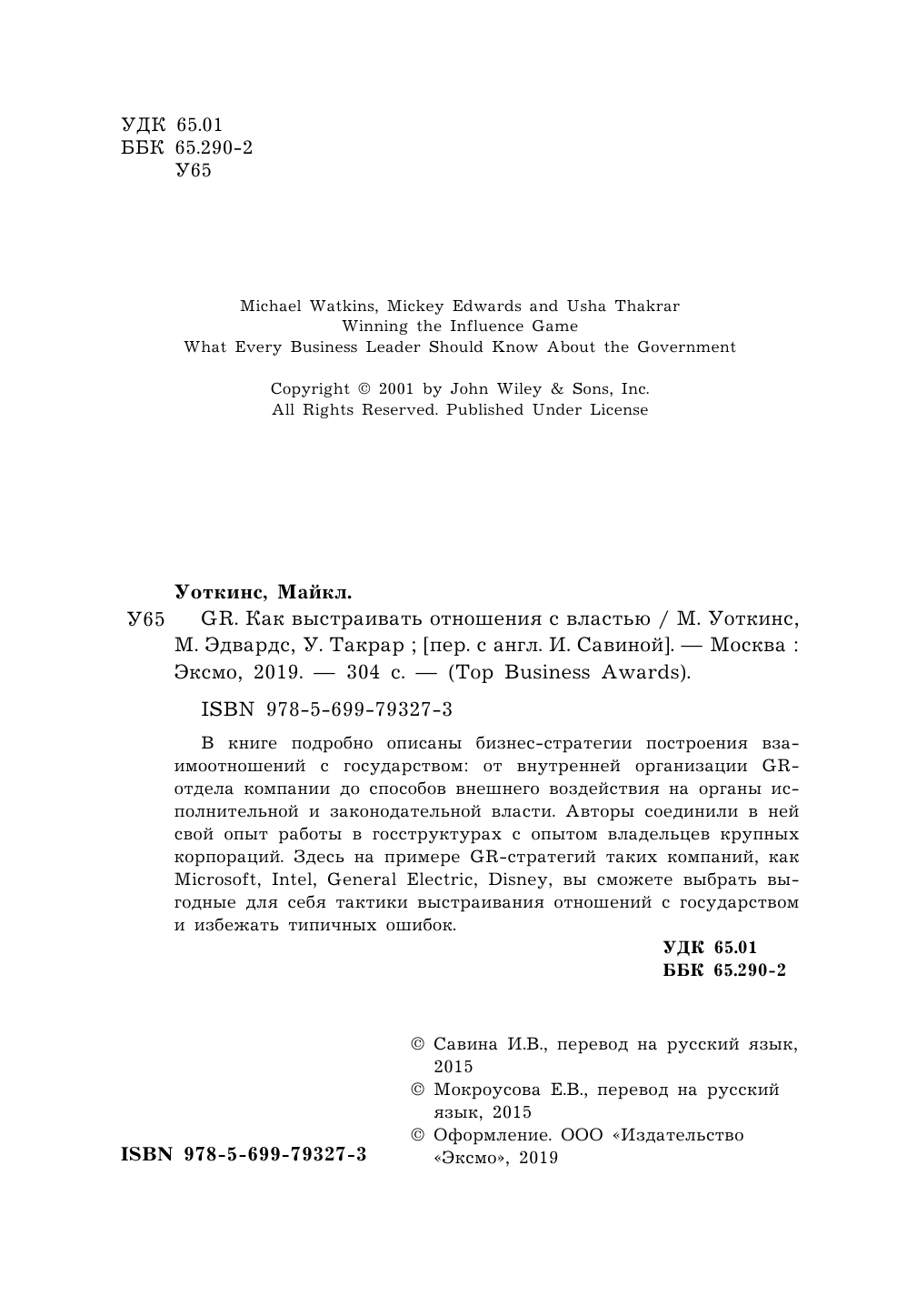 GR. Как выстраивать отношения с властью (Уоткинс Майкл, Эдвардс Микки, Такрар Уша); ООО "Издательство "Эксмо", 2019