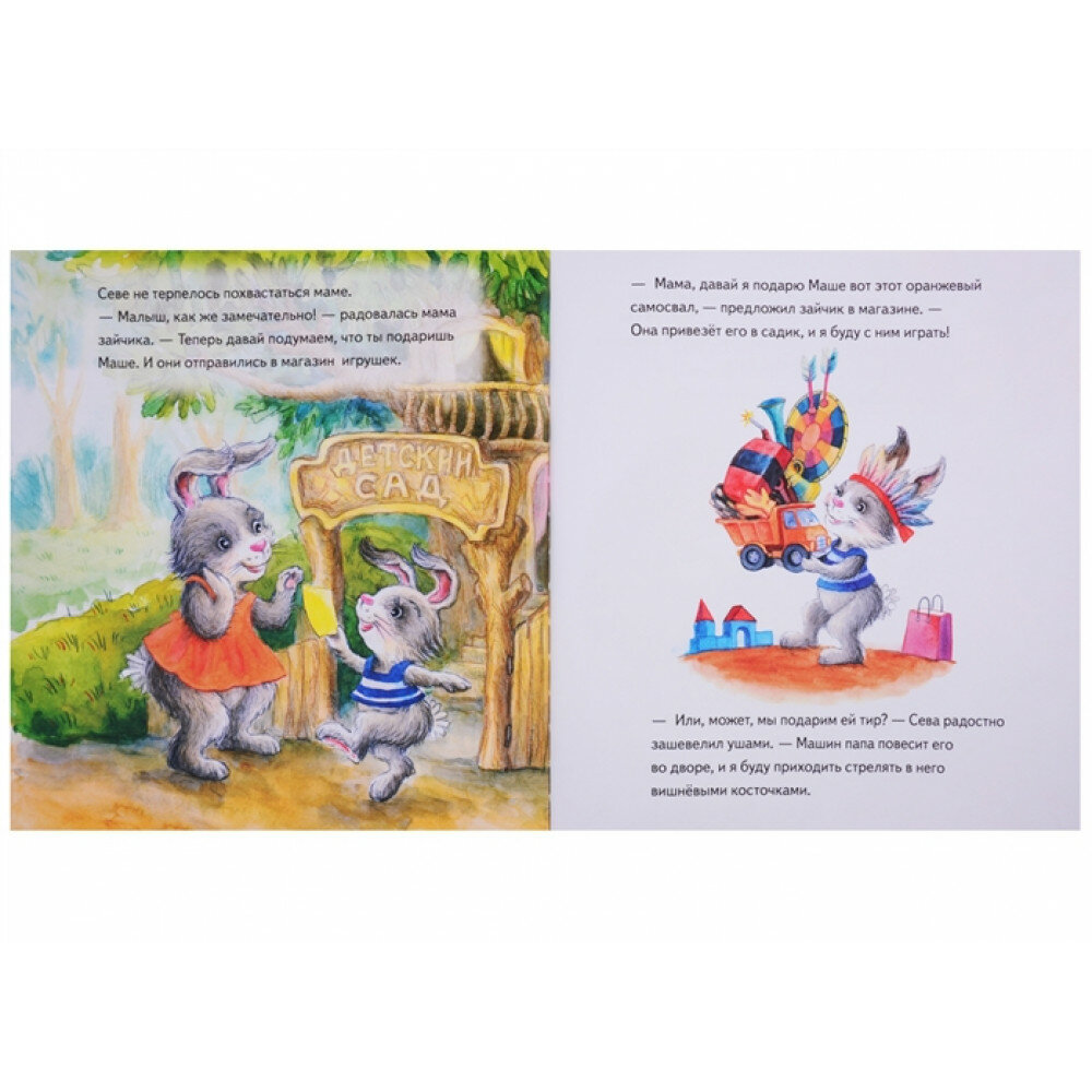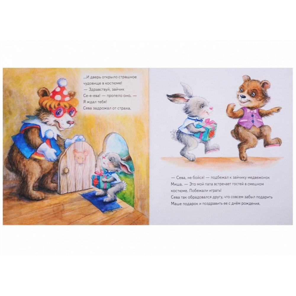 Перед нами очередная сказка про зайчика Севу. Книга очень красочная, с замечательными иллюстрациями на каждой странице. Но ценность этой книжки не только и не столько в картинках, а в самой сказке. На примере этого маленького зайчика книга показывает детям, что такое хорошо и что такое плохо. Как следует поступать, а как не следует, и почему. В конце книги вы найдете вопросы по прочитанной сказке для беседы с ребенком и обсуждения поступков Севы. Таким образом эта сказка имеет непосредственный воспитательный эффект. Всем собирающимся на день рождения рекомендуем.