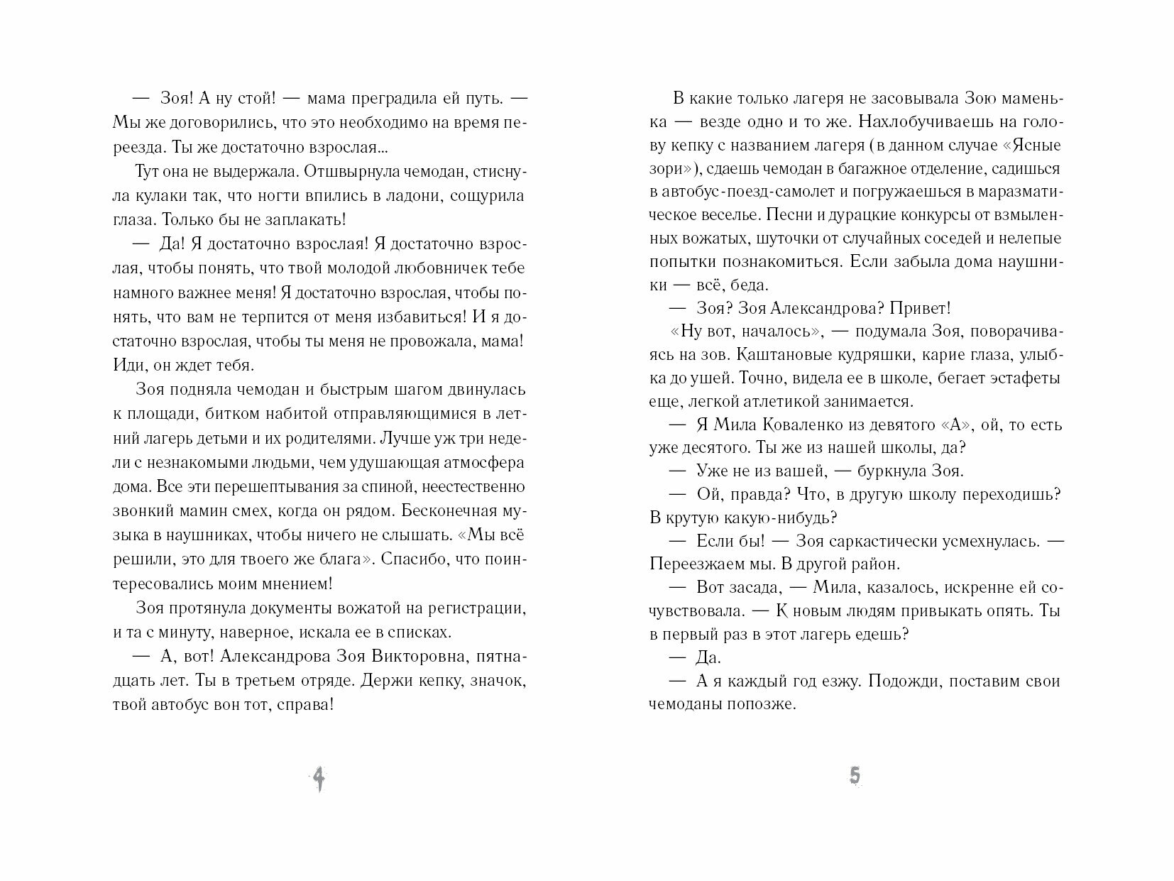 Зое — пятнадцать. Мама отправила её в очередной летний лагерь, даже не поинтересовавшись мнением дочери. К счастью, в лагере героиня быстро находит родственную душу — энергичную и забавную Милу. Королева «Ясных зорь» — Полина, окружённая лебезящей свитой. В глазах подруг эта девчонка — средоточие всего, что они терпеть не могут в людях: высокомерия, эгоизма, глупости. Как объяснить её популярность? По ночам в лагере из года в год пропадают дети. В память об исчезнувших остаются лишь круги на полях. Что это — случайность? Заговор руководства? Неведомая потусторонняя сила? Зоя и Мила пытаются во всём разобраться.