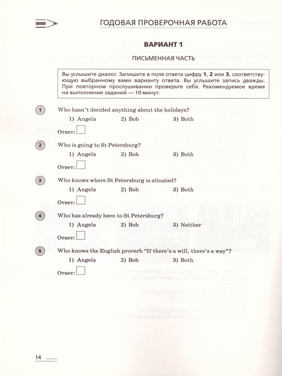 Пособие предназначено для подготовки девятиклассников к участию во Всероссийской проверочной работе по английскому языку и включает в себя полугодовую и годовую проверочные работы, тексты для аудирования и ключи к заданиям.