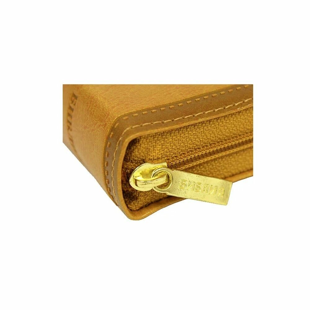 Переплет из экокожи на молнии, "золотой" обрез, закладка, индексы для поиска библейских книг.