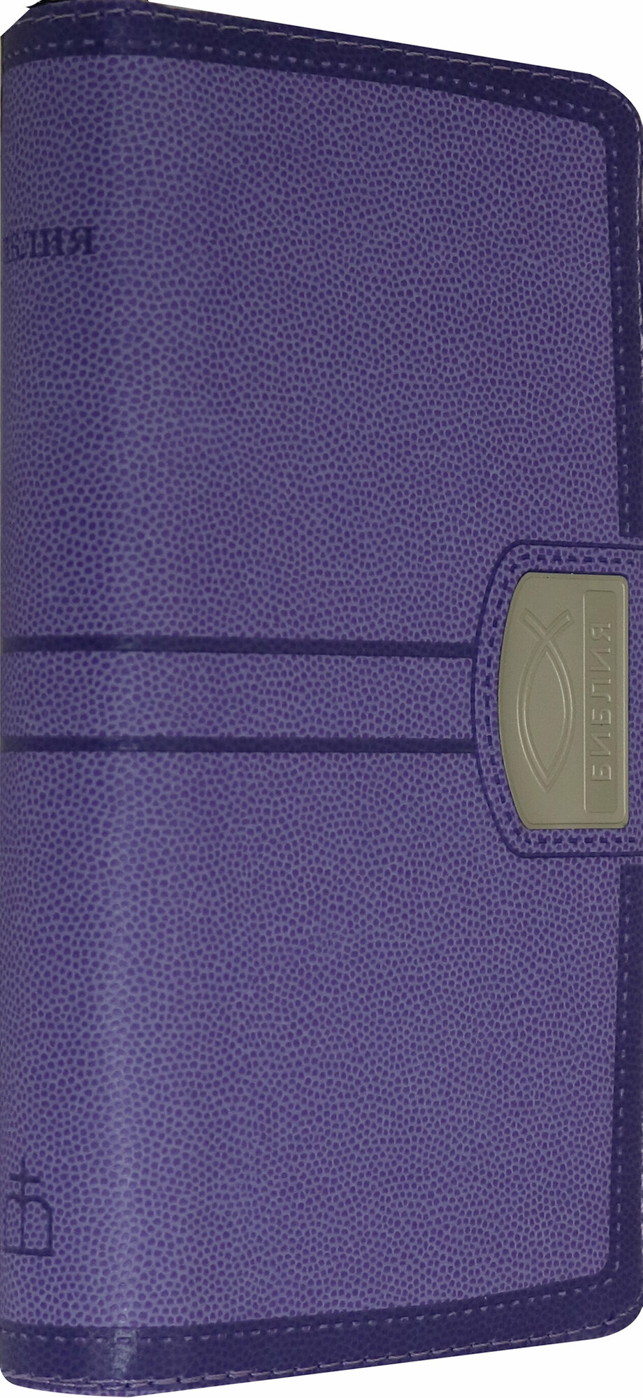 Переплет из экокожи на молнии, "серебряный" обрез с голографическим напылением, закладка, индексы для поиска библейских книг.
