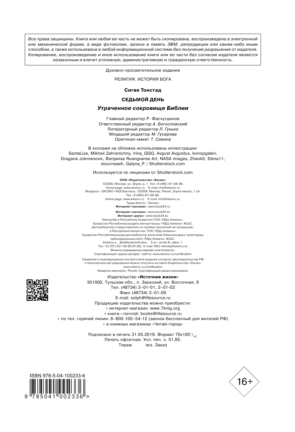 Сервис сравнения цен СкидкаГИД предлагает сравнить цены на товар «Книга: Седьмой день. Утраченное сокровище Библии (Тонстад Сигве); Эксмо, 2019»