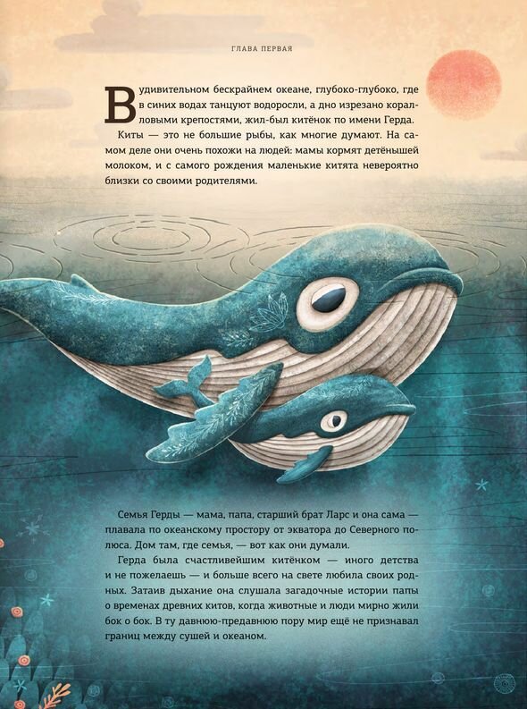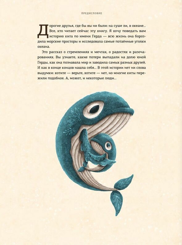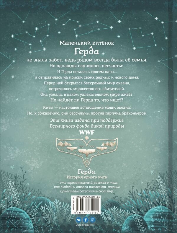 Мудрая и познавательная история о маленьком китенке Герде. Она живет в бескрайнем океане со своими родителями-китами и братом Ларсом. Однажды случилось страшное - семья китенка попала в руки китобоев, и Герда осталась совсем одна. Отважный китенок решает во что бы то ни стало разыскать своих родных и пускается в опасное путешествие - в воды крайнего севера. Найдет ли Герда свою семью? Красочные иллюстрации художника Андриана Махо, наполненные любовью к нашей голубой планете, погрузят читателя в волшебную атмосферу книги.