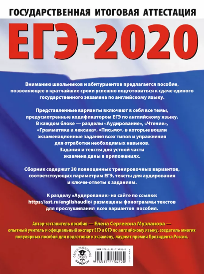 ЕГЭ-20. Английский язык. 30 тренировочных вариантов экзаменационных работ (Е. С. Музланова); Издательство АСТ, 2019