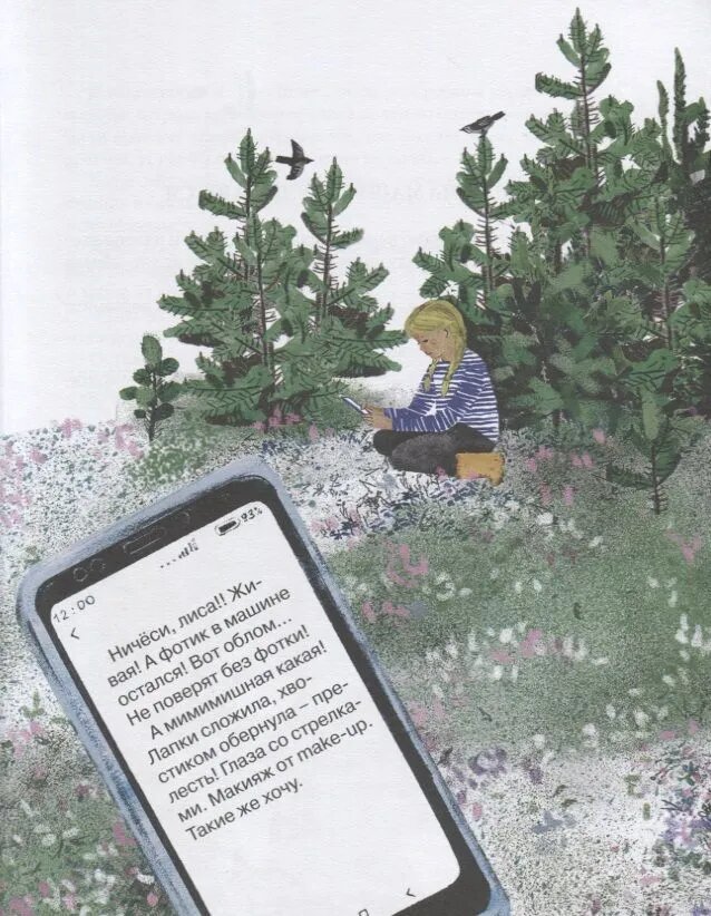 Очень добрая, летняя книга о путешествии одной питерской семьи на Кольский полуостров. Честно признаюсь, давно не читала книг про детей и родителей, где единственной проблемой было бы невозможность выйти из машины, чтобы сделать зарисовку тундры! В семье две сестры – старшая Марина, вооруженная карандашами и кисточками, и младшая Ирка, не расстающаяся со своим телефоном. Обе девочки чрезвычайно открытые, добродушные и любознательные. По дороге их ждут приятные открытия и неожиданные встречи: бескрайние леса, наполненные рубиновой брусникой, уютные деревушки с церквями, ленивые нерпы на Ладожском озере, полярные совы и оленьи стада и даже косатки у берегов Териберки…Если бы только природоведение в школе преподавали по этой книге! Очень порадовала и форма изложения: небольшие главы от лица автора дополняют живые, полные эмоций впечатления сестёр: Марина делает художественные зарисовки с описаниями, а Ира ведёт заметки в стихах на телефоне. Вся эта красота была бы невозможна без потрясающих иллюстраций сестёр-близняшек Ани и Вари Кендель, от которых так и веет чем-то родным и близким. Не знаю, как вы, а я всегда мечтала о путешествии на Север, и после этой книги захотелось сразу же сесть в машину и отправиться исследовать такую разную природу наших необъятных краёв.
