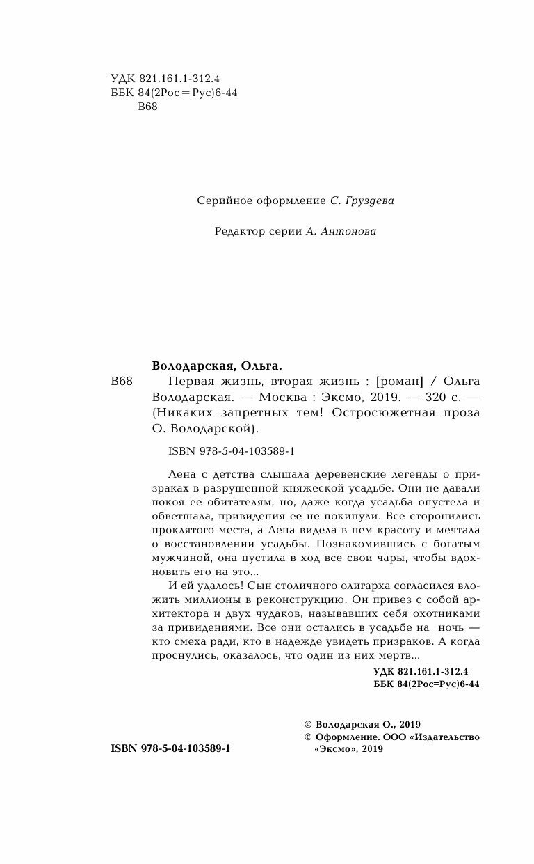 Первая жизнь вторая жизнь (Ольга Володарская); Эксмо, 2019