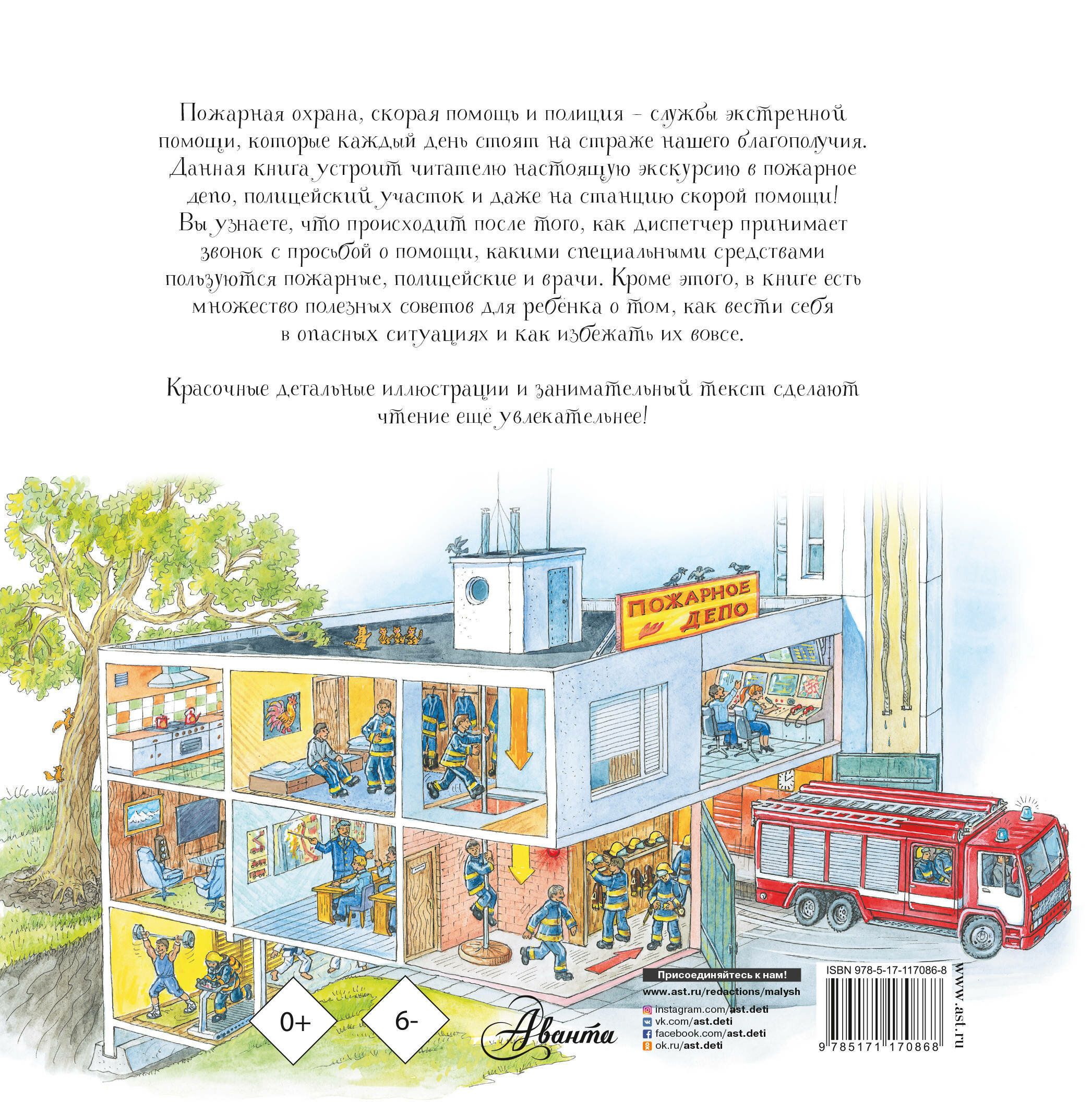 Книга расскажет о том, как работают в нашей стране службы экстренной помощи - пожарная охрана, полиция и скорая помощь. Врачи, пожарные и полицейские стоят на страже нашего здоровья и благополучия и каждый день спасают жизни. Читатель познакомится с устройством полицейского участка, пожарного депо, станции скорой медицинской помощи, тюрьмы, травмпункта и больницы. Узнает, какие специальные средства использует каждая из служб экстренной помощи для спасения людей. А, кроме того, в книге найдется огромное количество советов не только о том, как избежать опасной ситуации, но и как выйти из нее. Что делать, если случился пожар? Как оказать первую помощь? Как вести себя, если к вам подошел полицейский? Подробные красочные иллюстрации позволят рассмотреть все в мельчайших деталях и еще больше расскажут о работе героев, которые находятся среди нас. Для среднего школьного возраста.