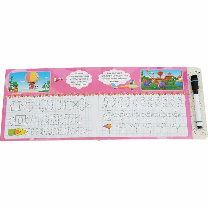 Увлекательная книжка с маркером: развивает мелкую моторику, обучает первым навыкам письма, тренирует внимание и усидчивость, учит рисовать узоры и фигурки.