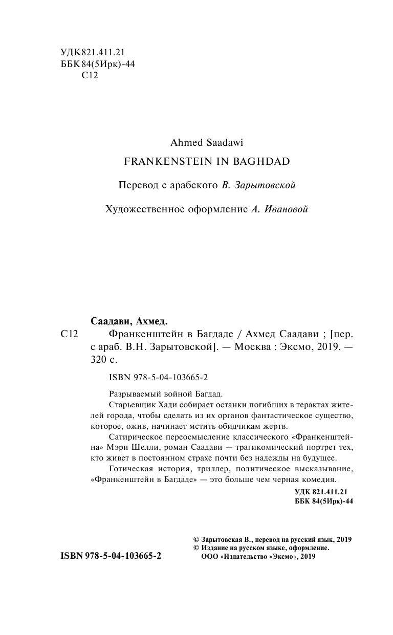 Книга: Франкенштейн в Багдаде (Саадави Ахмед); ООО "Издательство "Эксмо", 2019