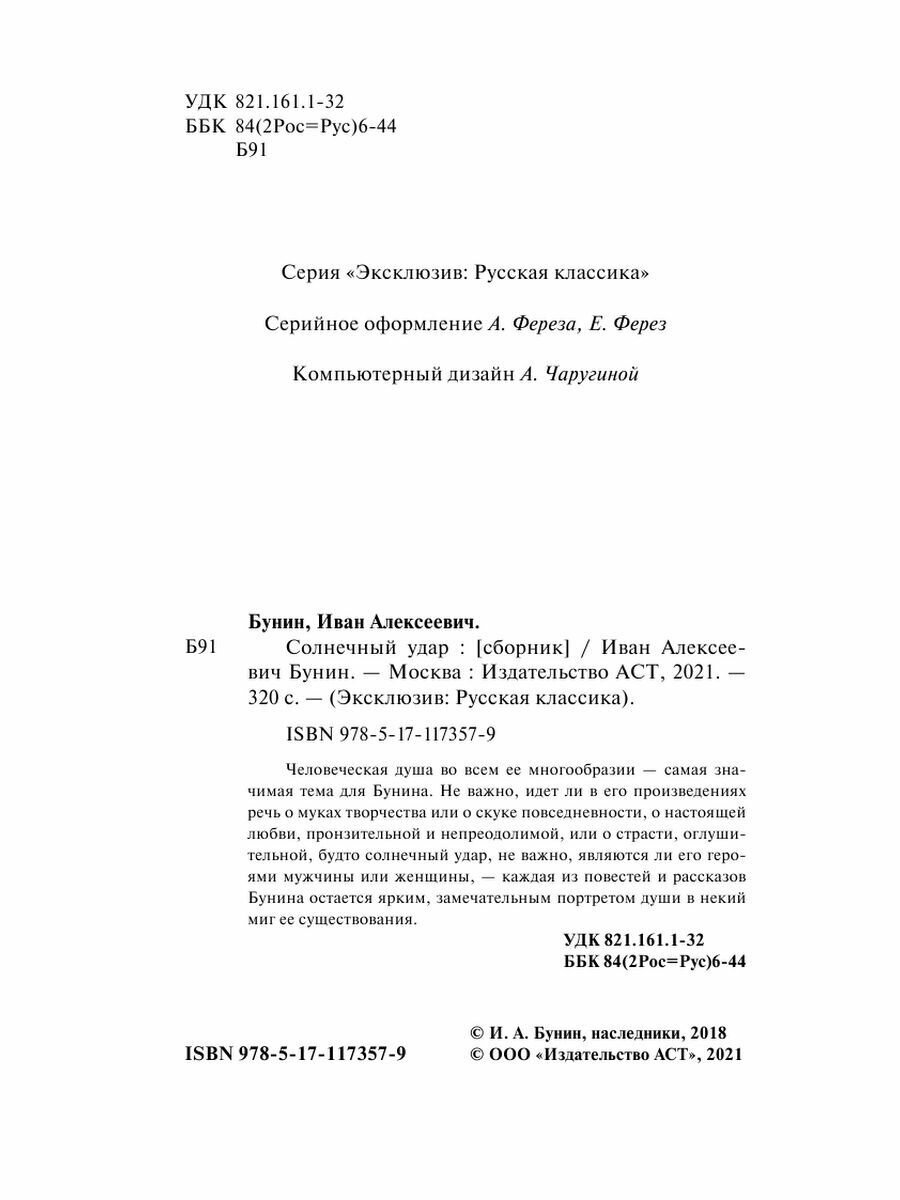 Книга: Солнечный удар (Бунин Иван Алексеевич); ИЗДАТЕЛЬСТВО "АСТ", 2019