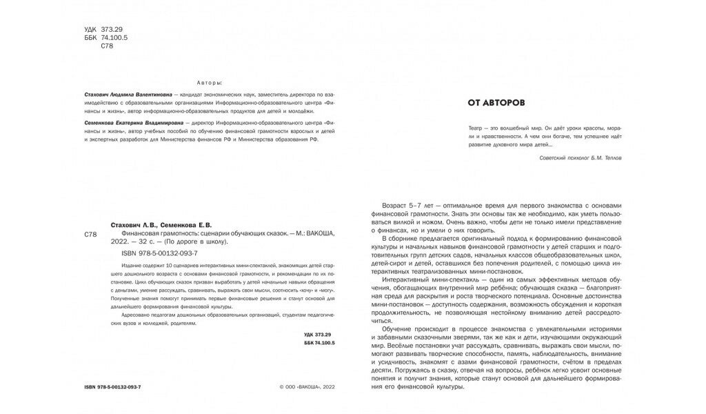 Финансовая грамотность. Сценарии обучающих сказок. ДО (Стахович Людмила Валентиновна, Семенкова Екатерина Владимировна); Вакоша, 2024