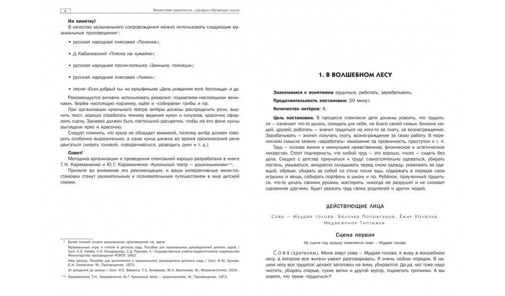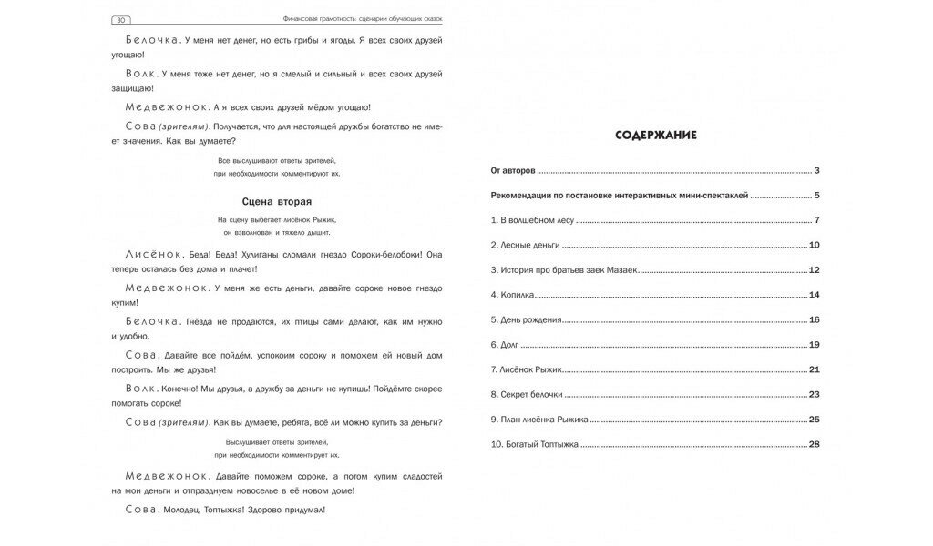 Издание содержит 10 сценариев интерактивных мини-спектаклей, знакомящих детей старшего дошкольного возраста с основами финансовой грамотности, и рекомендации по их постановке. Цикл обучающих сказок призван выработать у детей начальные навыки обращения с деньгами, умение рассуждать, сравнивать, выражать свои мысли, соотносить "хочу" и "могу". Полученные знания помогут принимать первые финансовые решения и станут основой для дальнейшего формирования финансовой культуры.