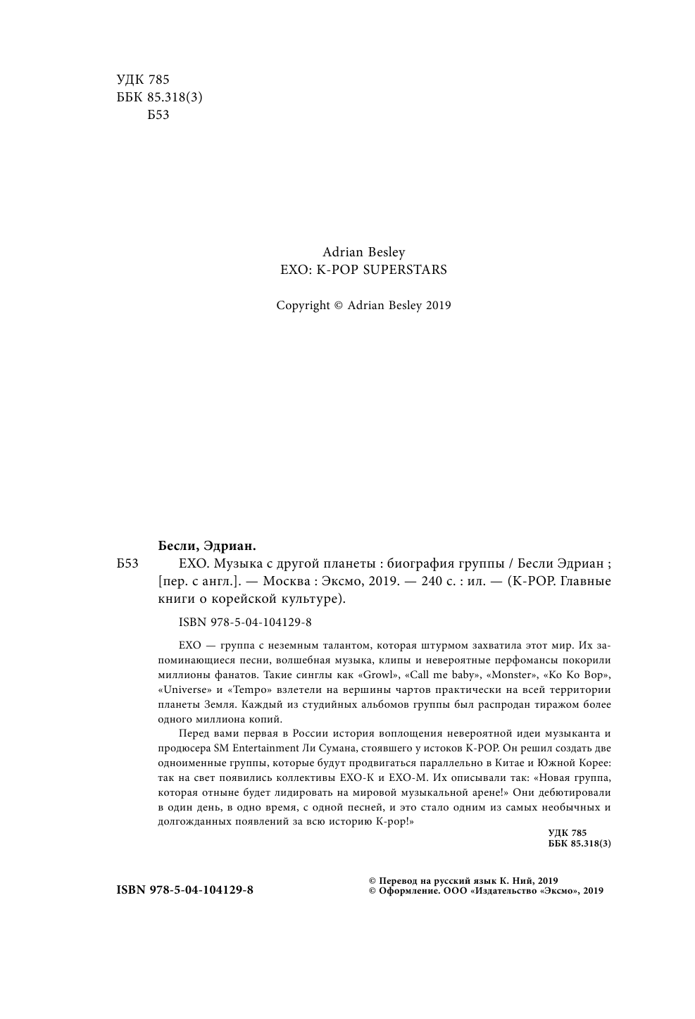 EXO. Музыка с другой планеты. Биография группы (Бесли Эдриан); ООО "Издательство "Эксмо", 2019
