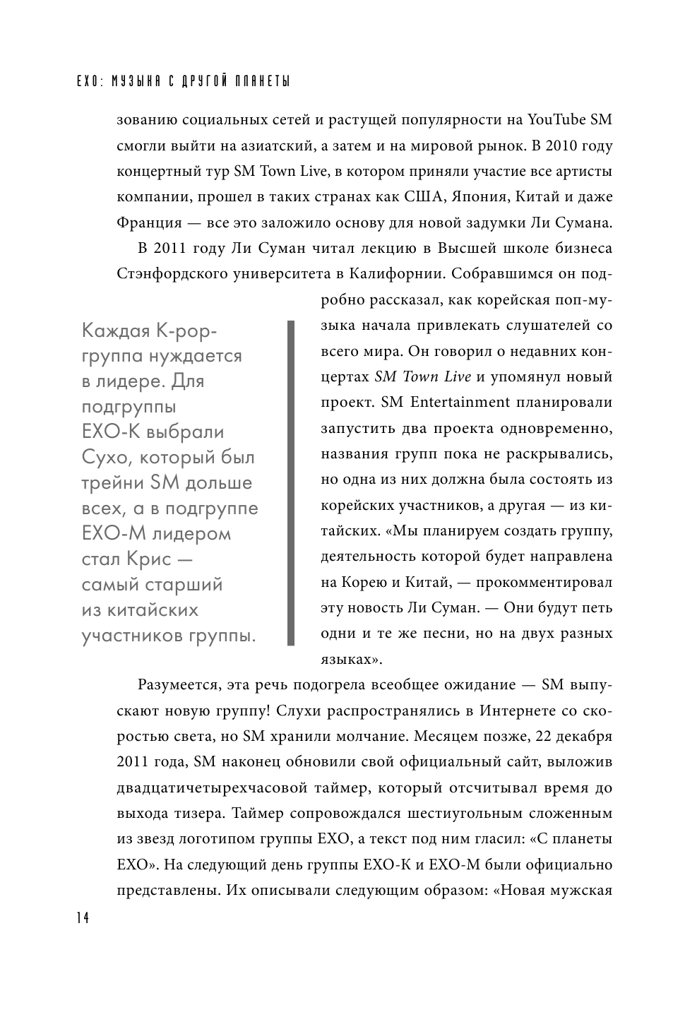 Перед вами первая в России история воплощения невероятной идеи музыканта и продюсера SM Entertainment Ли Сумана, стоявшего у истоков K-POP. Он решил создать две одноименные группы, которые будут продвигаться параллельно в Китае и Южной Корее: так на свет появились коллективы ЕХО-К и ЕХО-М. Их описывали так: "Новая группа, которая отныне будет лидировать на мировой музыкальной арене!" Они дебютировали в один день, в одно время, с одной песней, и это стало одним из самых необычных и долгожданных появлений за всю историю К-рор!