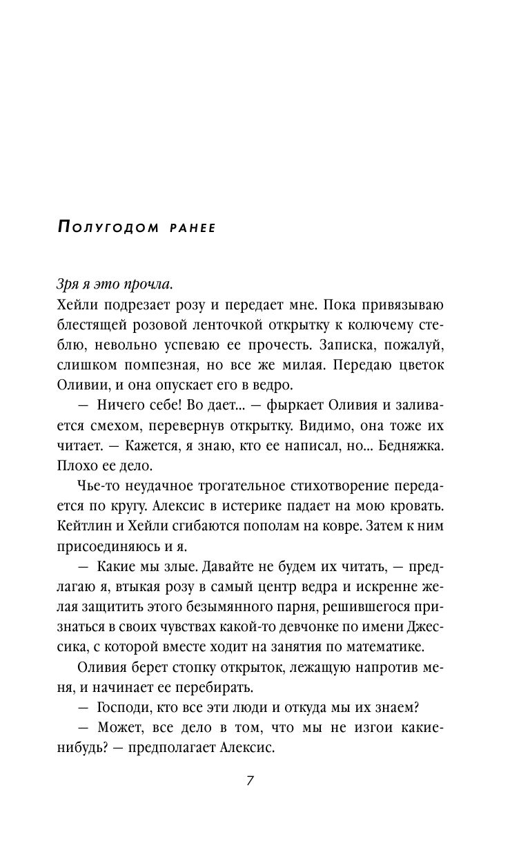 Дружба с "Безумной восьмеркой" - самыми красивыми и успешными старшеклассницами - обеспечила Саманте популярность в школе. Но никто не знает, что уже пять лет она скрывает ото всех свои навязчивые идеи, внезапные приступы паники и одержимость числом три.