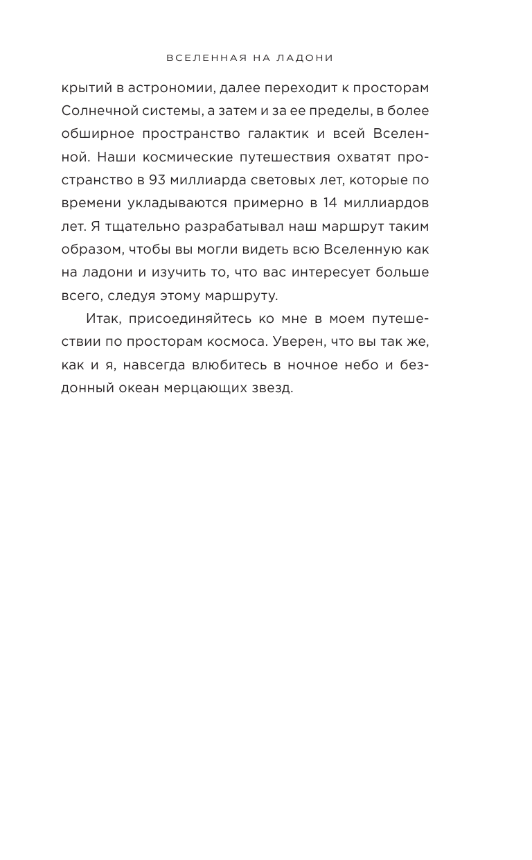 Достаточно лёгкий язык, интересные факты, раскрытые простым языком астрономические понятия, показательные рисунки – все в книге присутствует. Когда-то у меня были 2 томика советской книги про интересные физические факты. «Вселенная на ладони» напомнила ту книгу.