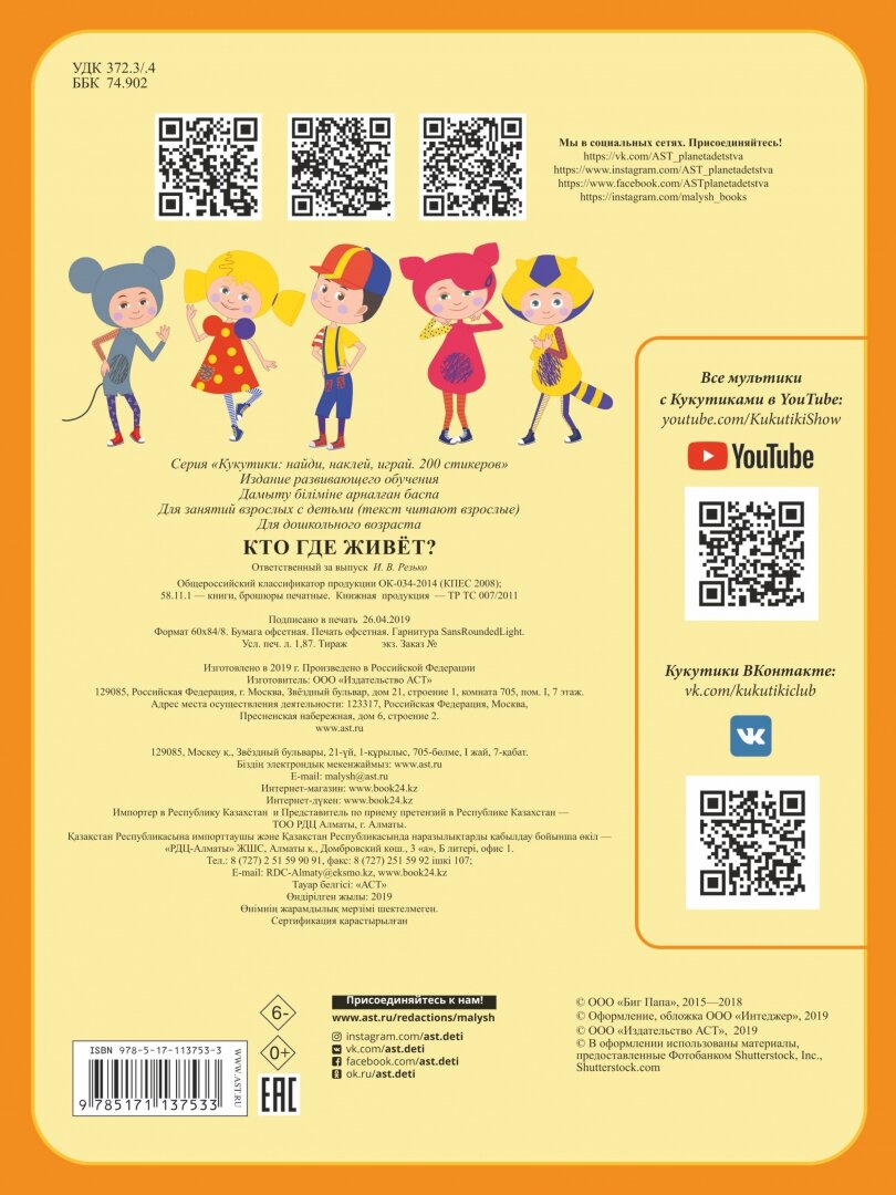 На сегодняшний день товар «Книга: Кукутики. Кто где живет? (.); ИЗДАТЕЛЬСТВО "АСТ", 2019» можно купить с кешбеком в 1 магазине: book24