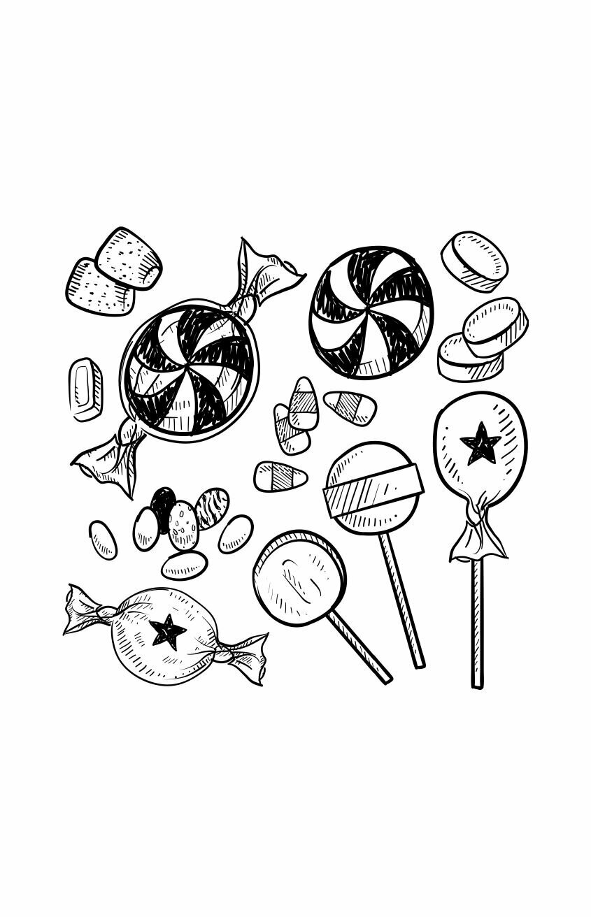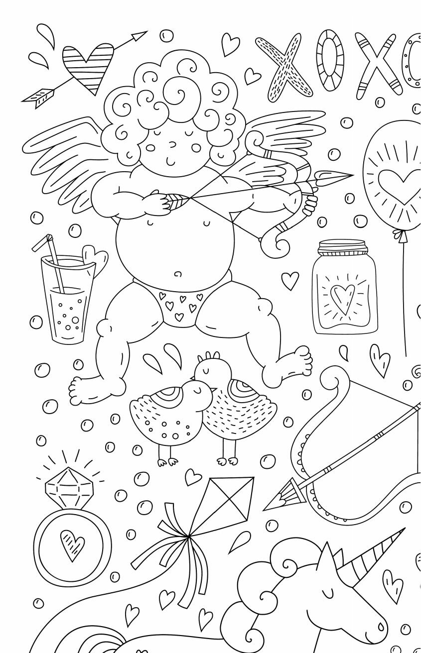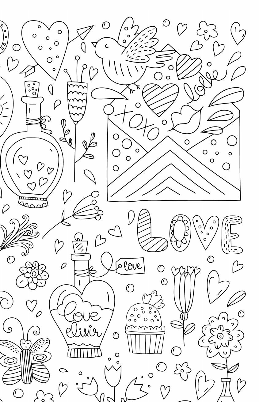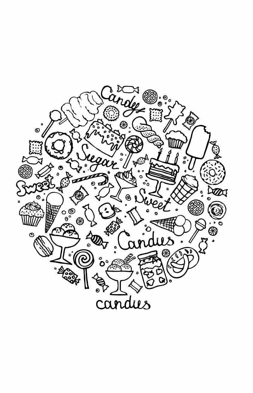 В раскраске представлены самые разнообразные иллюстрации в разных стилях. Линии тонкие, линии толстые. Околосладкая тема. Расрисовывай, что хочешь и как хочешь.