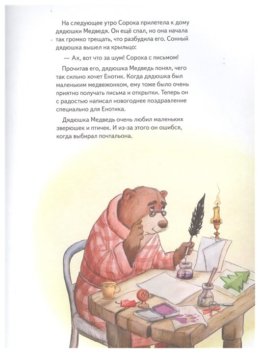 Когда Енотик получает письмо, он становится Большим Енотиком (ох как хочется стать поскорее большим всем малышам, мне понравилось, как автор эту мысль умело поставил в сказку)