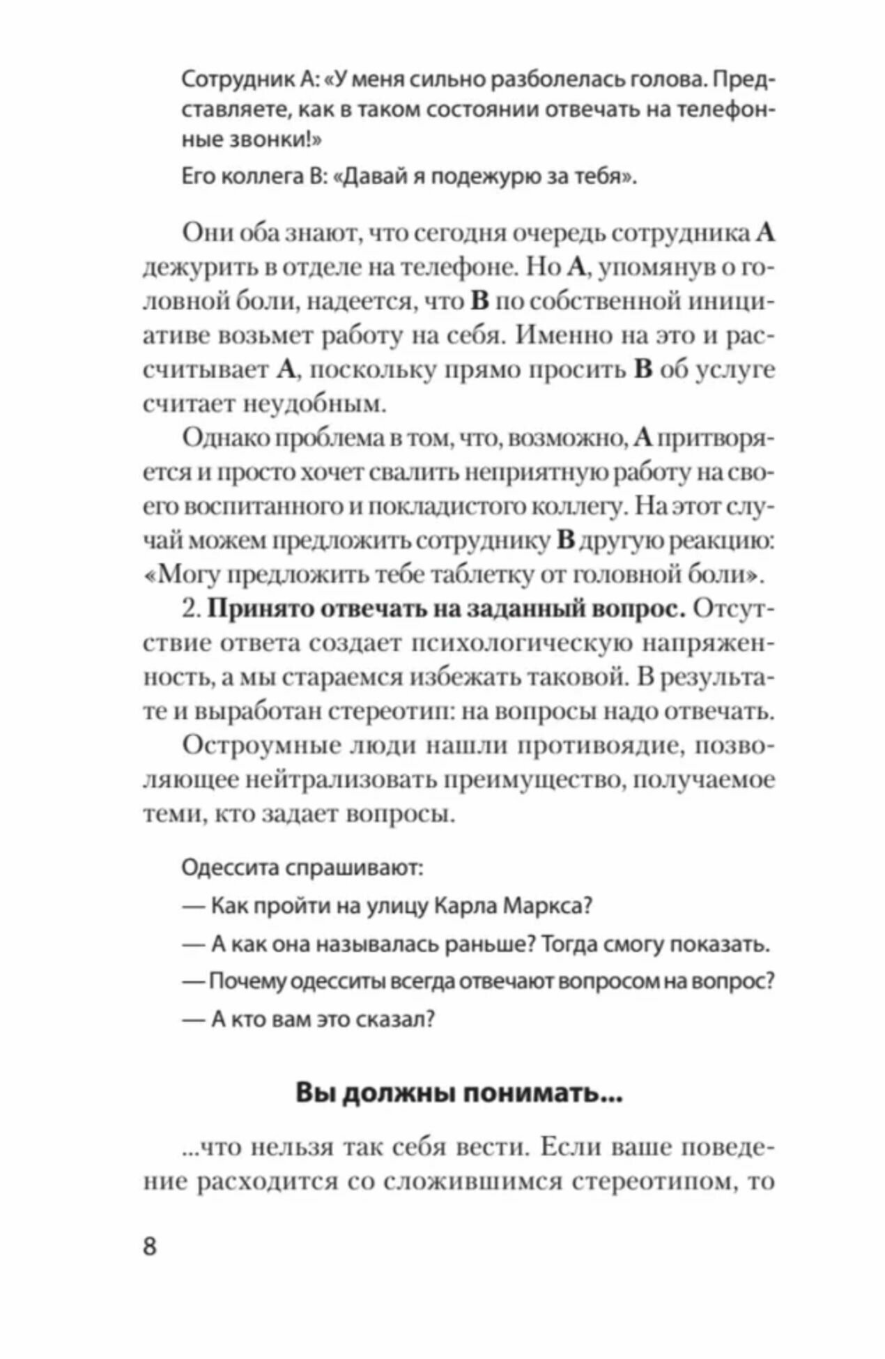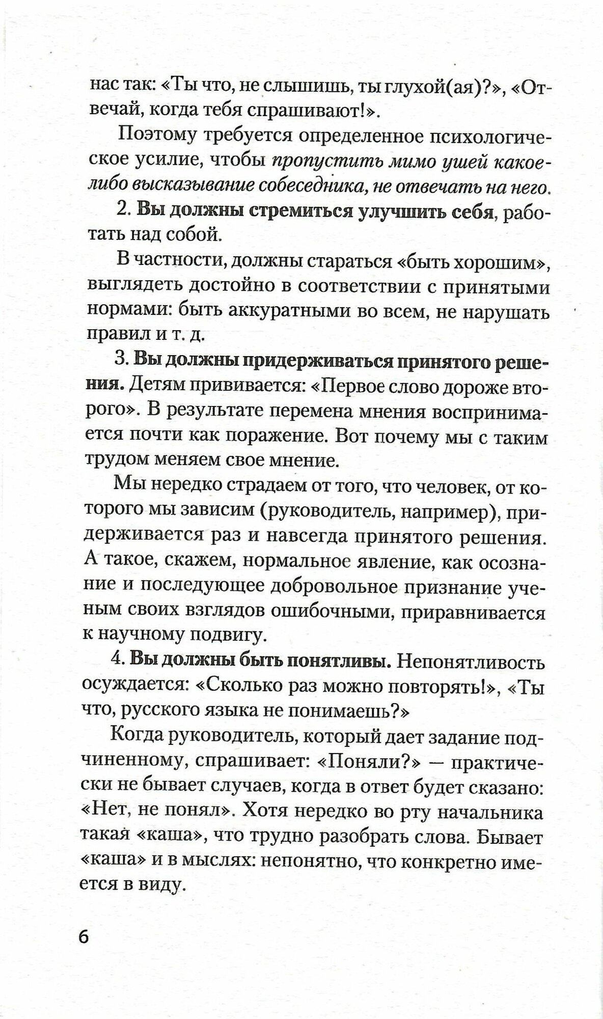 Книга полезная. Написана доступно для понимания, много практических примеров, возможно. даже излишне много. Глава, посвященная тому, как уверенно сказать "нет, начинается лишь на 194 странице. До этого автор рассматривает причины формирования чувства вины, способы развития уверенности в себе и различные способы манипуляций. Книга напечатана на желтоватой бумаге, но шрифт четкий. Цена демократичная.
