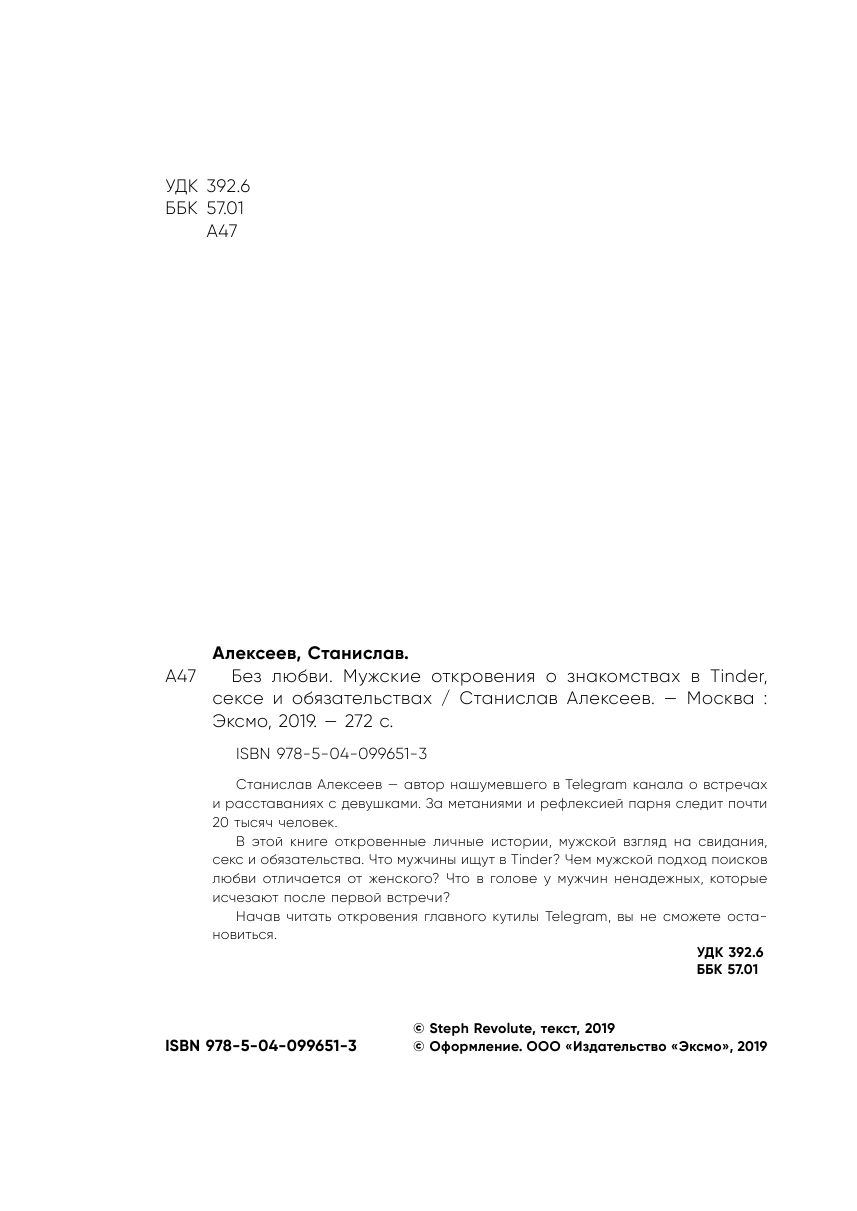 Без любви. Мужские откровения о знакомствах в Tinder сексе и обязательствах (Станислав Алексеев); Эксмо, БОМБОРА, 2019
