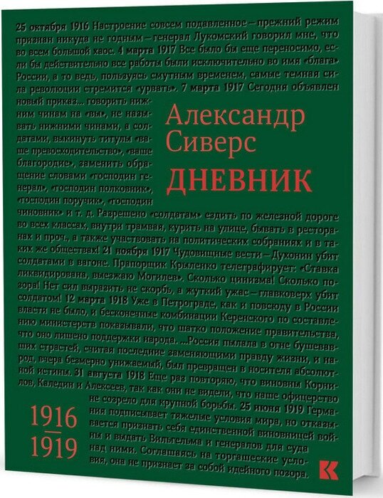 Замечательно изданный дневник А. М. Сиверса (белая бумага, шитый блок, ляссе), документ эпохи, противоречивой и кровавой. О Первой мировой до мартовских событий 17-го не много, но некоторые пассажи очень характерны, особенно цитаты из брошюры генерала Рагозы о наступление под Барановичами (стр. 40-42). Красными командирами, кровавый урок не был усвоен, и был повторен не единожды в большем масштабе.