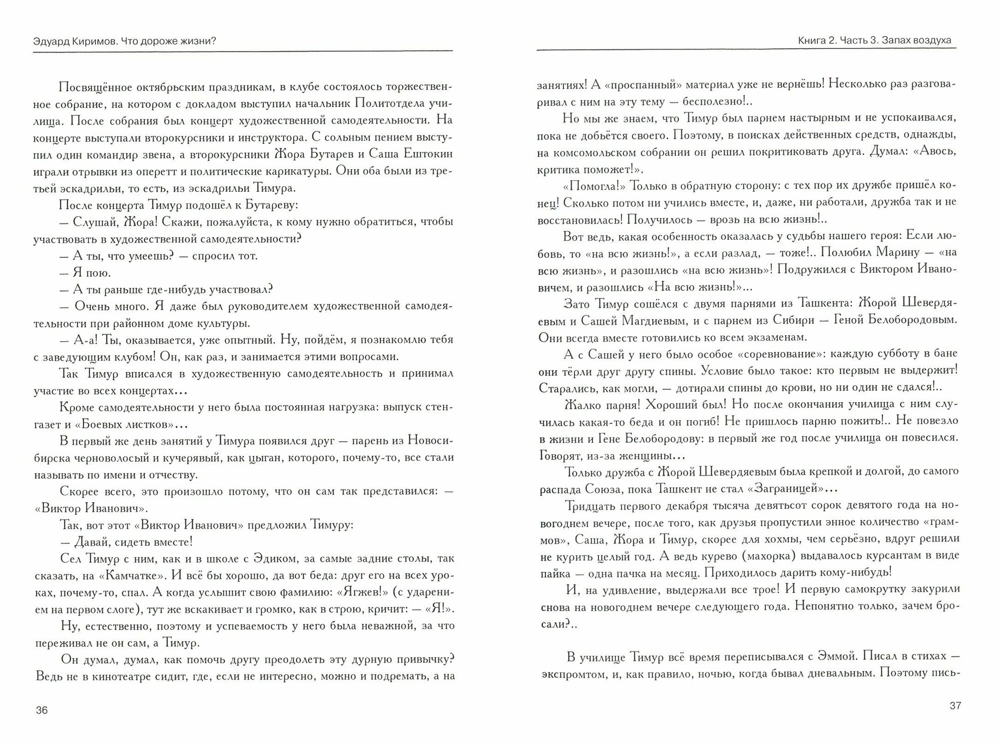 Во второй книге романа "Что дороже жизни?", то есть в третьей и четвертой его частях - "Запах воздуха" и "Откровения" - описываются: учеба Тимура Маева в самаркандском аэроклубе на самолете "УТ-2", а также в Краснокутском летном училище ГВФ (Гражданского Воздушного Флота) СССР на самолете "По-2" и работа в Гражданской авиации СССР на самолетах "По-2", "Ан-2", "Ил-12", "Ил-14", "Ту-104", "Ил-18", "Ан-10-12", и "Ту-154", двадцать последних лет которой герой провел в молдавском и московском транспортных управлениях Гражданской авиации СССР в должности руководителя Отделов инспекций по безопасности полетов.
