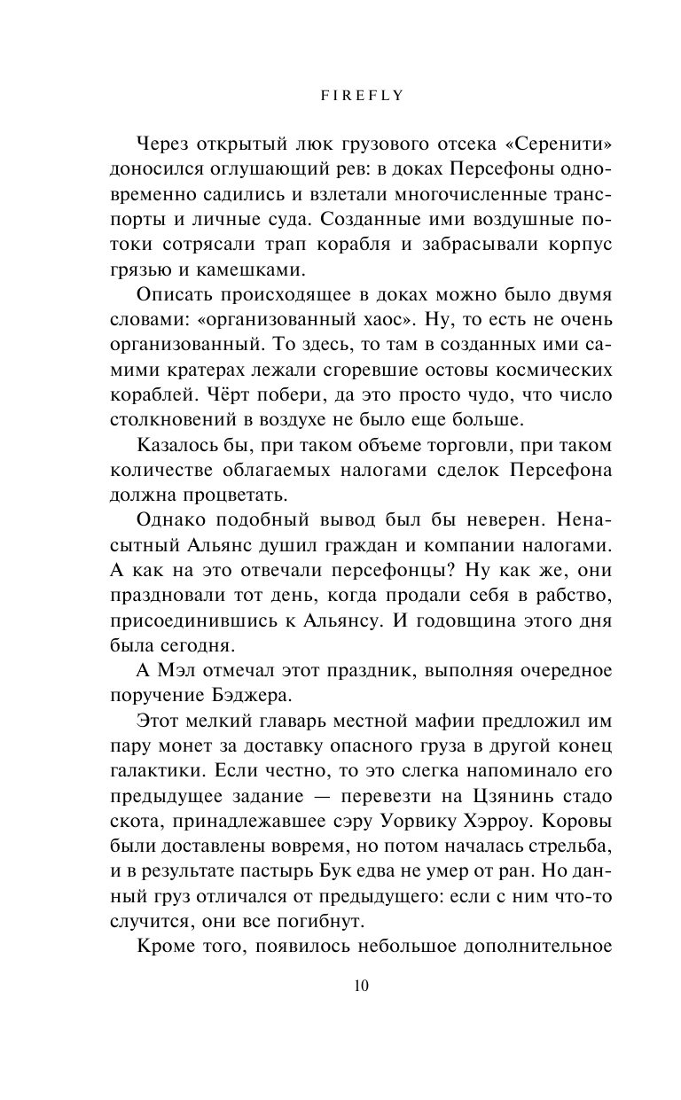 Первый роман трилогии, официально продолжающий культовый фантастический ТВ-сериал "Светлячок" - Firefly. Роман написан под контролем Джосса Уидона, создателя сериала.