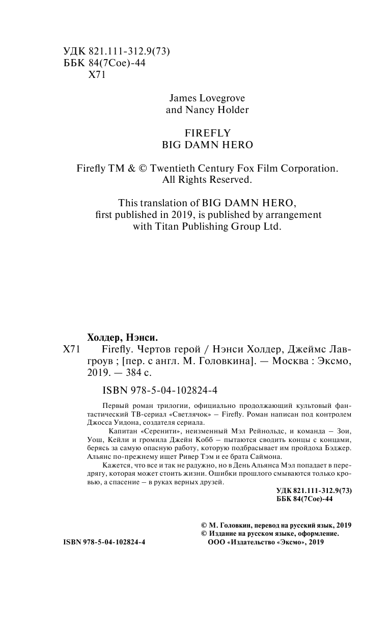 Книга: Firefly. Чертов герой (Холдер Нэнси, Лавгроув Джеймс); Издательство Fanzon, 2019