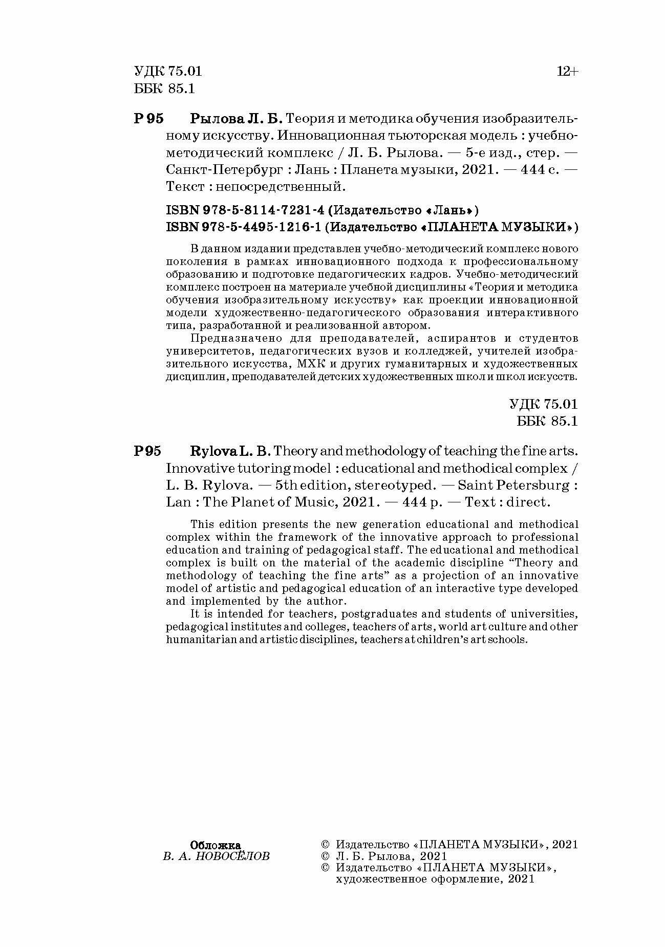 Теория и методика обучения изобразительному искусству. Инновационная тьюторская модель (Рылова Людмила Борисовна); Планета Музыки, 2021