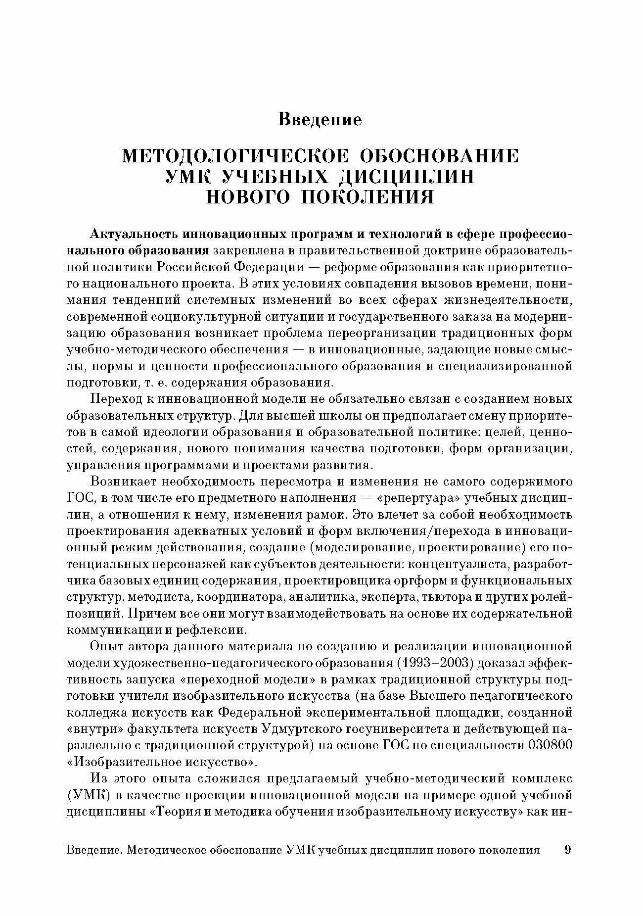 В данном издании представлен учебно-методический комплекс нового поколения в рамках инновационного подхода к профессиональному образованию и подготовке педагогических кадров. Учебно-методический комплекс построен на материале учебной дисциплины "Теория и методика обучения изобразительному искусству" как проекции инновационной модели художественно-педагогического образования интерактивного типа, разработанной и реализованной автором.