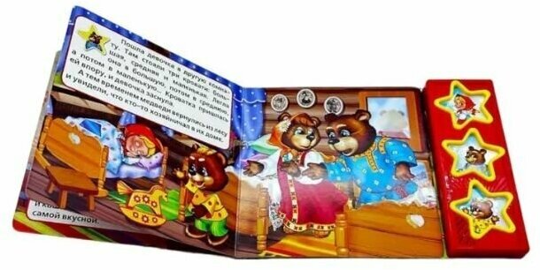 Красочная книжка с добрыми песенками познакомит с приключениями сказочных героев. Отлично подойдет для чтения детям. Модуль работает на включение и выключение музыки.