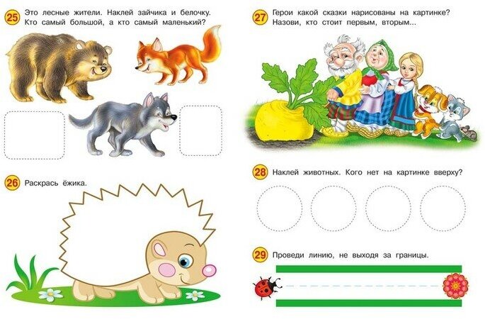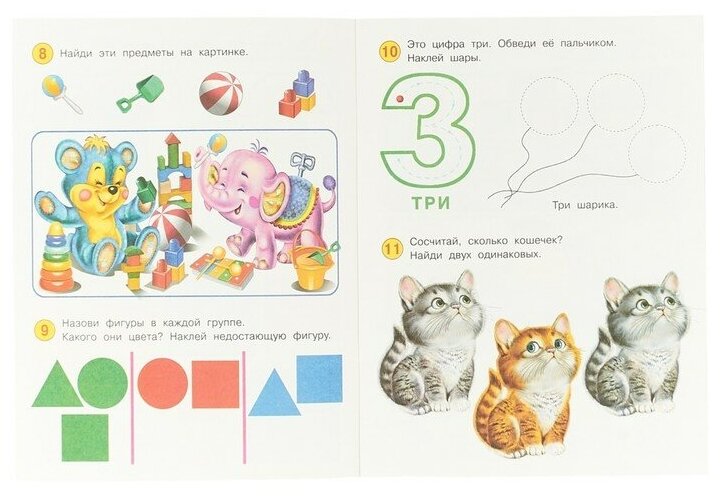 Хоть и тоненькое, но очень хорошее издание для развития внимательности малышей, умения считать, называть цвета и формы предметов. Все задания соответствуют возрасту, ребенок с удовольствием их выполняет.