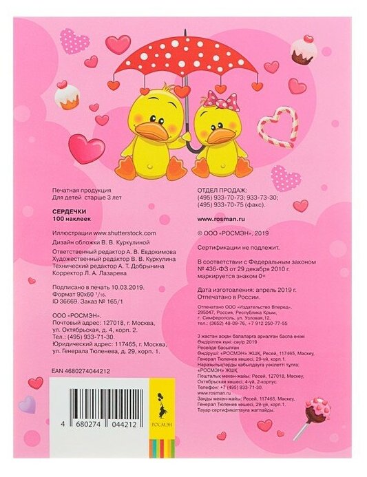 Книга: 100 наклеек. Сердечки (А. В. Евдокимова); РОСМЭН, 2022