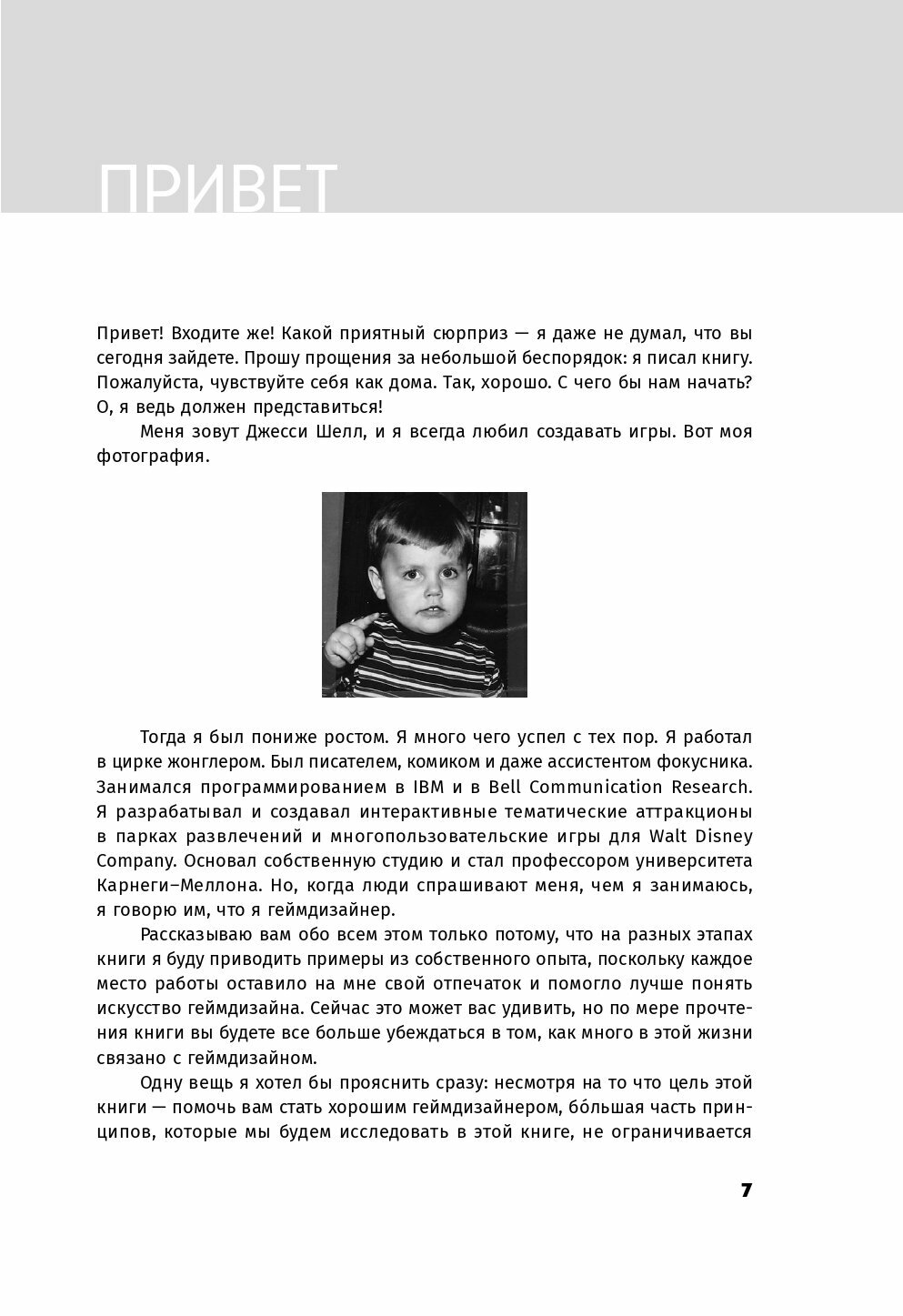 Самое полное руководство по геймдизайну — теперь в официальной версии на русском языке! Видеоигры повсюду. На планшетах, приставках, компьютерах. На любой вкус, пол и возраст. Игровая индустрия по доходам уже опережает киноиндустрию. Но как выделиться из общей массы и создать игру, которая завоюет сердца миллионов? Хорошая игра, как хорошее кино, построена по определенным законам. Геймдизайнеру необходимо продумать все с точки зрения психологии, дизайна, архитектуры, музыки, логики и математики. И учесть миллионы тонкостей: баланс наград и уровня сложности, тактических и стратегических решений, эстетические предпочтения целевой аудитории, соответствие визуального ряда и звукового сопровождения. Джесси Шелл, всемирно известный геймдизайнер, работавший на Walt Disney Company, рассказывает, как сделать игру, которая завоюет весь мир.
