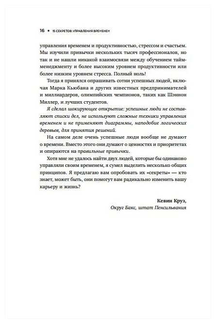 Кевин Круз Kruse KevinКевин Круз — автор бестселлеров, востребованный лектор и основатель нескольких успешных компаний из списка Inc 500. Консультирует топ-менеджеров крупнейших корпораций и членов конгресса. Когда-то работал круглыми сутками, пытаясь удержать маленькую компанию на плаву, но настоящего успеха ему удалось достичь только благодаря эффективной системе управлением времени.
