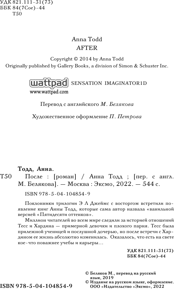 Книга: После (Тодд Анна , Беляков Михаил (переводчик)); Эксмо, 2019