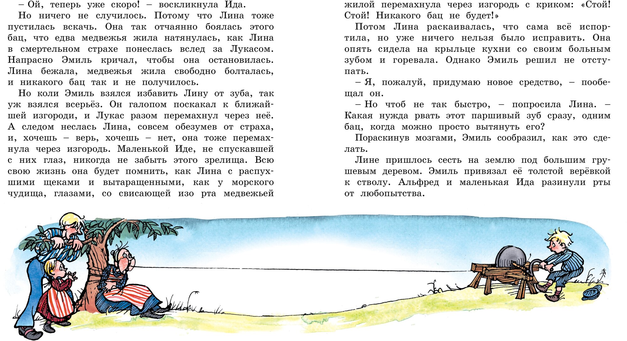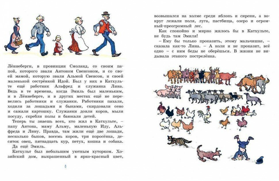 Замечательная книга ( одна из четырёх) про деревенского мальчика Эмиля! Книга прекрасно подойдёт для совместного семейного досуга. Наполнение внутри весьма приятное, иллюстрации невероятно красивые! Книгу можно спокойно давать ребенку на чтение, если учите самостоятельно читать. Конечно, на первых парах не подойдёт, а в дальнейшем очень даже! Рекомендую к покупке и прочтению)