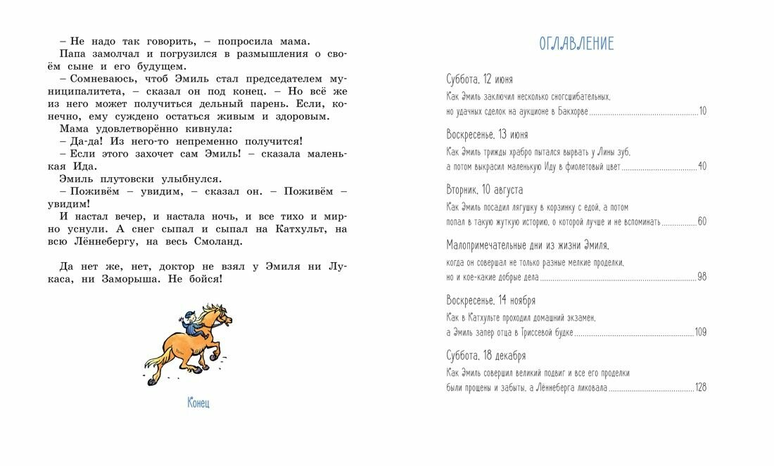 Это уже не первая книга о деревенском мальчишке Эмиле, очень полюбился нам этот герой. Истории про него увлекательные, озорные, заинтересуют и мальчиков и девочек! Я и сама с удовольствием их перечитываю. Издание мне очень понравилось, я не люблю толстые книги, а здесь комфортный для чтения формат, шрифт, приятные иллюстрации. Отличный вариант для семейного вечернего чтения.