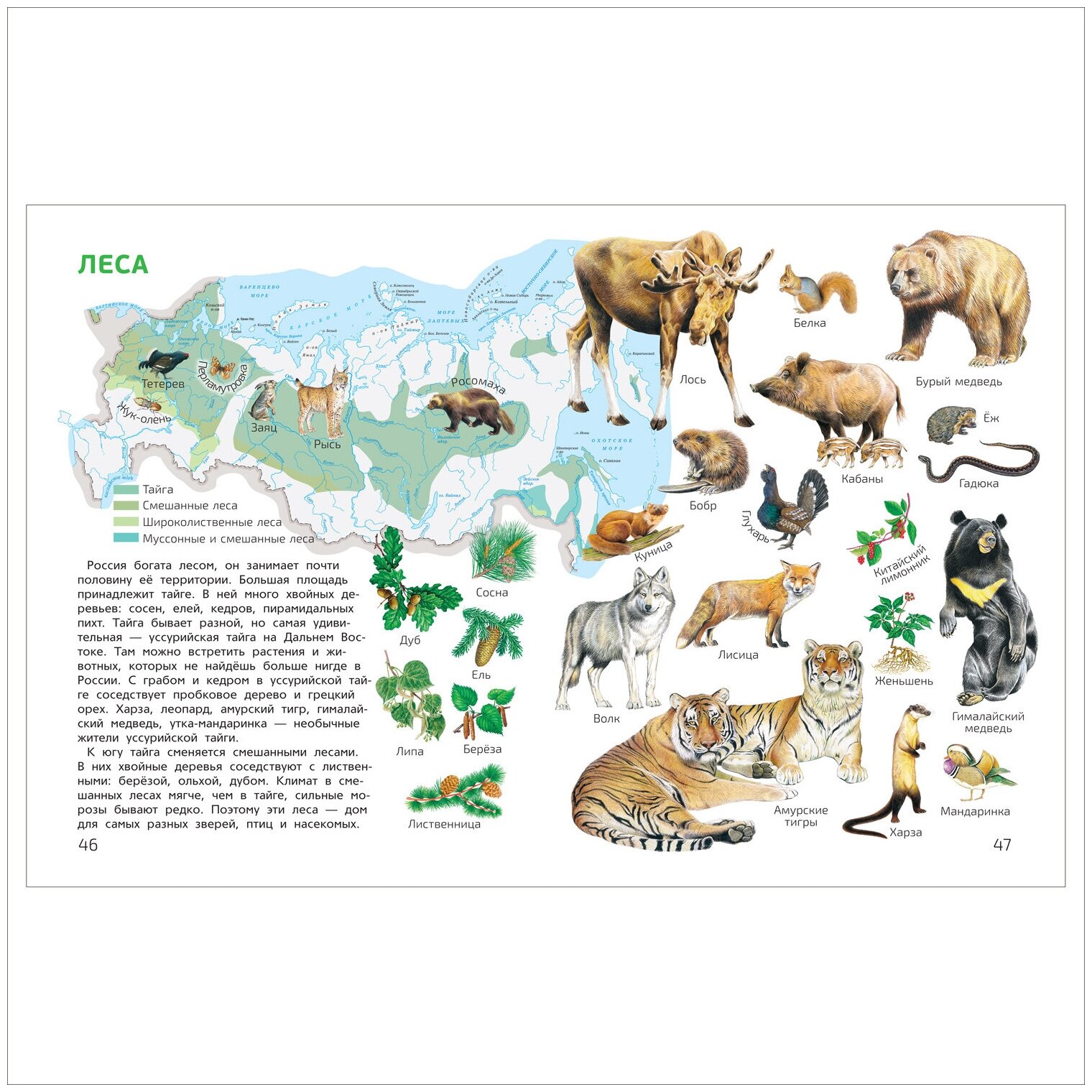 С этим атласом можно совершить невероятное путешествие по разным материкам, знакомясь с животными, обитающими на каждом из них. Но это не всё! Атлас поможет изучить звездное небо нашего полушария, узнать интересные факты о Вселенной и освоении космоса, запомнить, какая поверхность у земли, как происходит круговорот воды в природе, а также познакомит с природой, чудесами и устройством России. Художники : Бастрыкин В.В., Горячева В.А., Дмитриев М.О. и др.