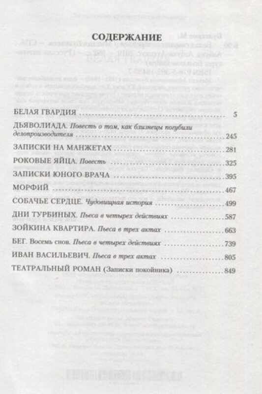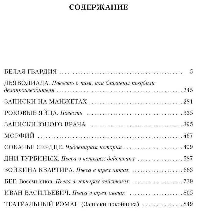 Великолепная возможность познакомиться с разнообразным литературным творчеством замечательного отечественного классика Михаила Афанасьевича Булгакова,ведь в представленном здесь сборнике опубликованы большинство его лучших произведений,за исключением романа "Мастер и Маргарита",тут и романы и повести и даже пьесы,например "Иван Васильевич",цикл рассказов "Записки юного врача",конечно,центральное место сборника занимает роман "Белая гвардия",посвящённый,как не трудно догадаться,событиям Гражданской войны и очень непростым судьбам участвовавших в ней людей,сложная,но очень интересная проза.