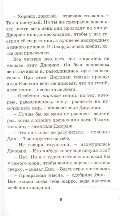 Очередное приключение Знаменитой пятёрки, но Джордж здесь ведёт себя слишком эгоистично и капризно. Она хочет быть похожей на мальчика, но ни один мальчик не стал бы так придираться к кому-нибудь и ревновать как она.