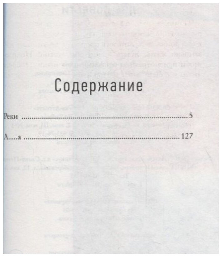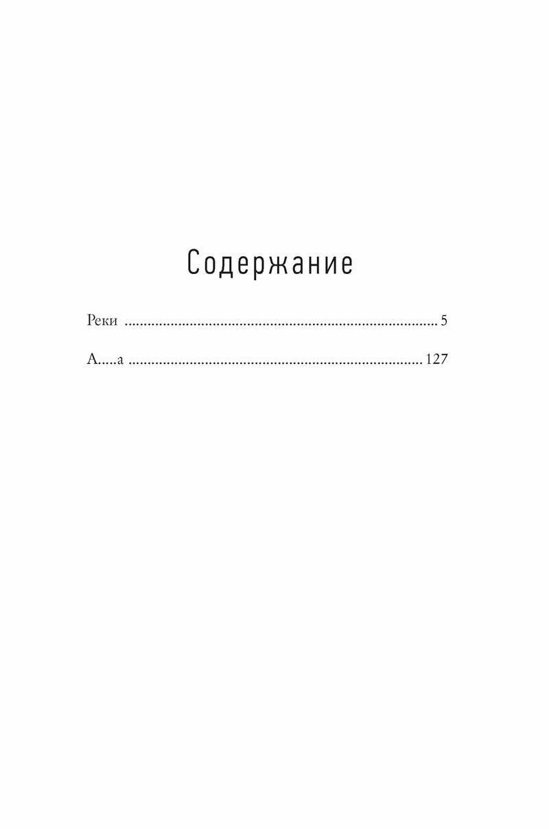 Повесть "Реки" - одно из любимых произведений Гришковца (по признанию самого автора) - не случайно однажды сравнивалась им с "Жизнью Арсеньева" Ивана Бунина. Детство, взросление, особым образом возникающее чувство Родины - эти темы сплетаются в единое, искусно выстроенное художественное повествование. Повесть "А.....а", по сути, говорит о том же, но уже отталкиваясь от восприятия "другого" сквозь призму "своего". Одним словом, эти две повести смотрятся весьма органично под одной обложкой.