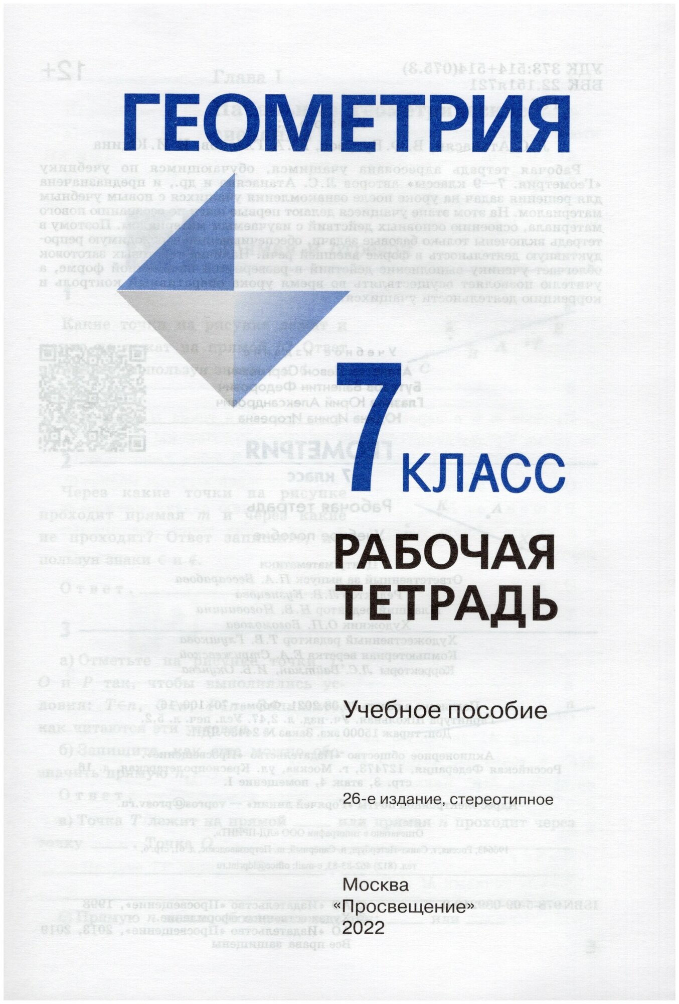 Геометрия. Рабочая тетрадь. 7 класс. (Атанасян Левон Сергеевич, Бутузов Валентин Федорович, Глазков Юрий Александрович); Просвещение, 2022