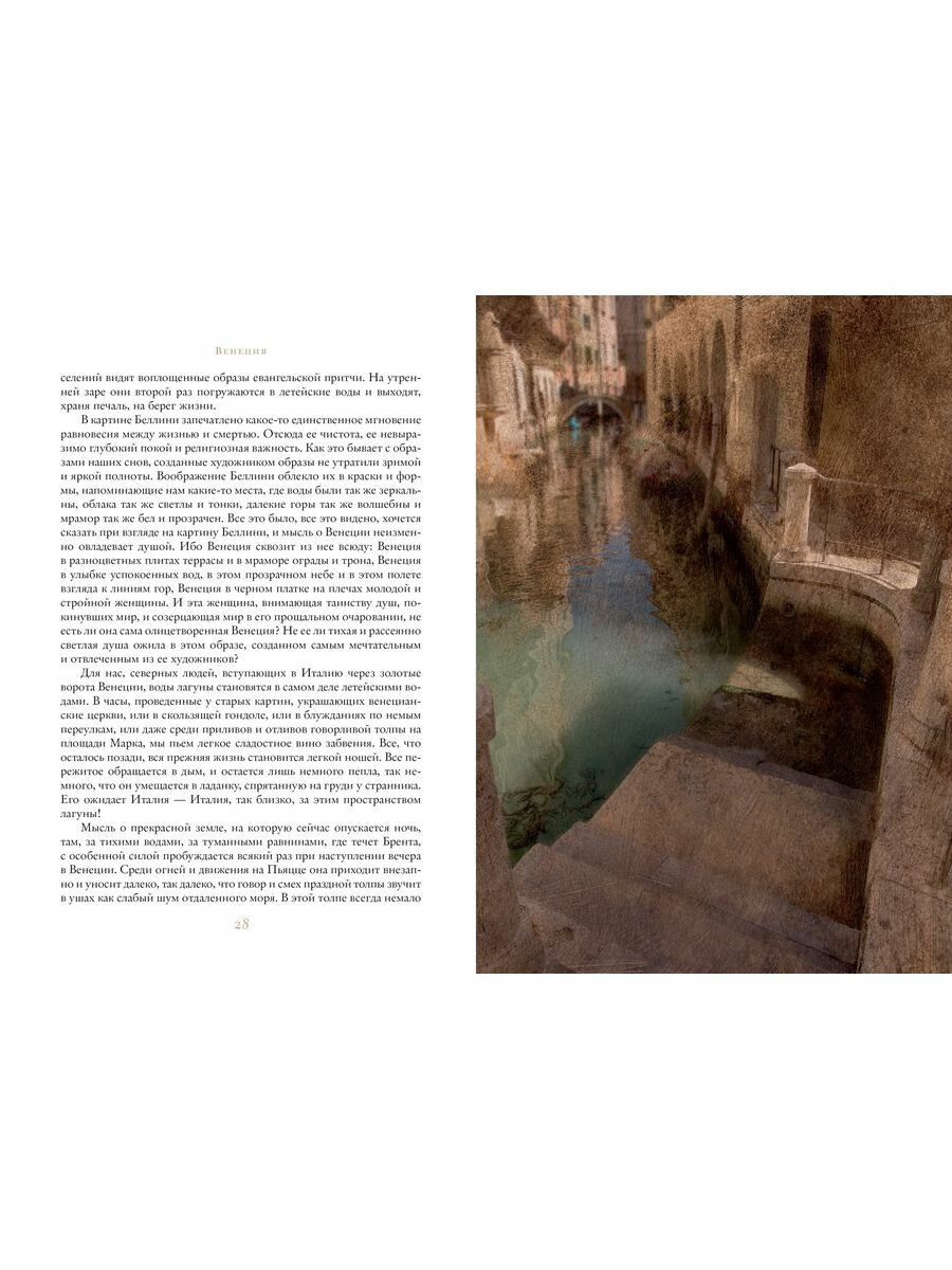 Изобразительный ряд в настоящем издании составляют произведения петербургского художника Нади Кузнецовой, работающей на стыке двух техник – фотографии и графики. В нее работах замечательно переданы тот особый свет, «итальянская пыль», которой по сей день напоен воздух страны, которая была для Павла Муратова духовной родиной.