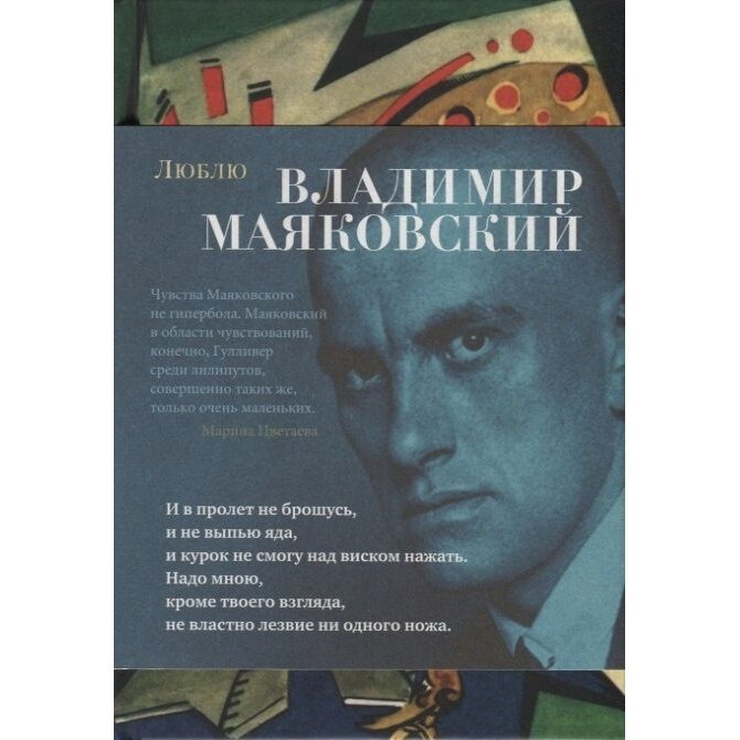 Не посмотрела когда покупала на размер - книга карманного формата. Голубая полоса сверху, это суперобложка, она снимается. Под ней авангардная картина авторства Маяковского, но недостаточно четкая, размытая по качеству и не очень красивый ее фрагмент на мой взгляд. Большой плюс что в конце поместили четыре поэмы. С удовольствием перечитала, многие строчки помню наизусть ещё со школьных времён