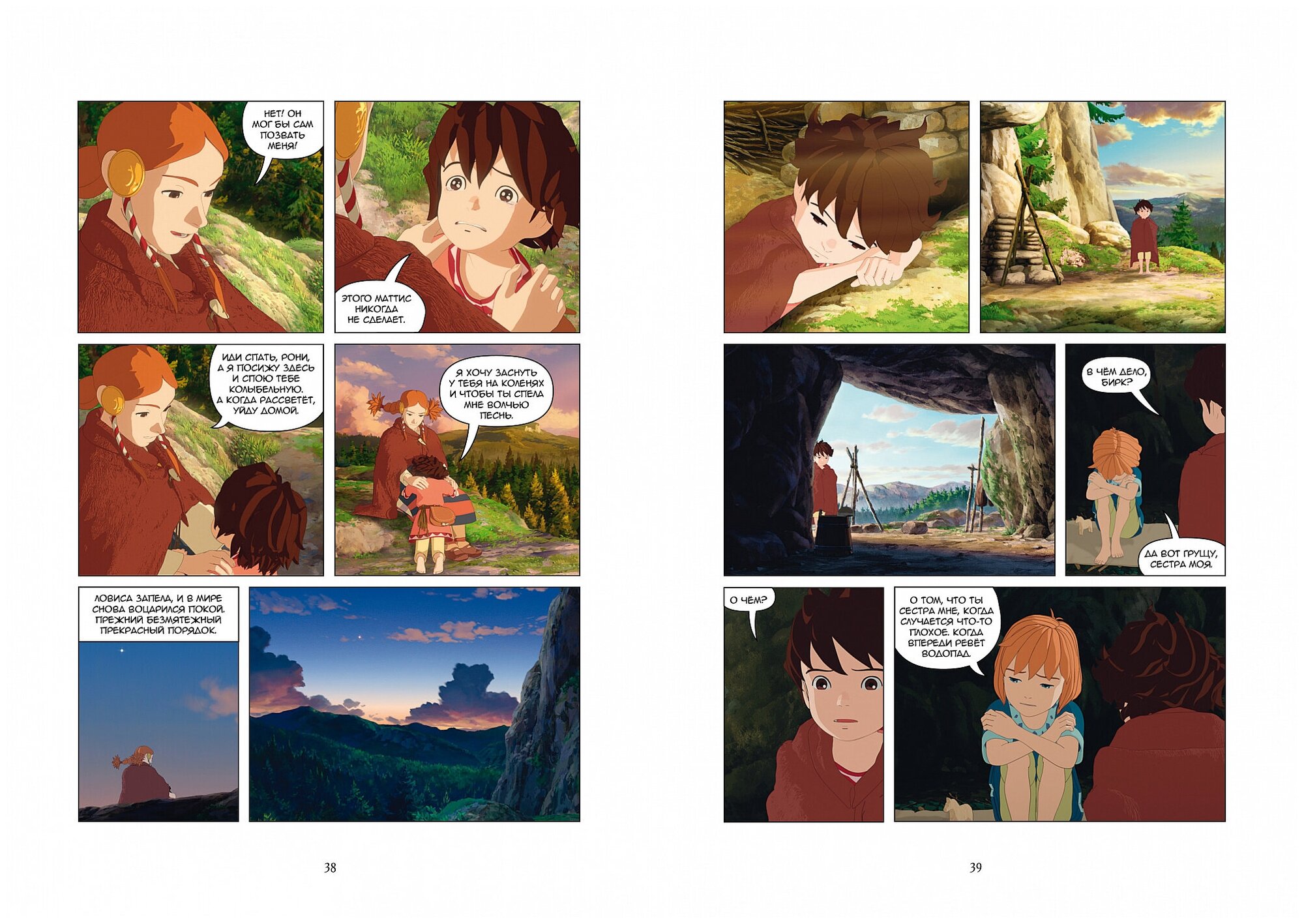 "Рони, дочь разбойника", книга, любимая с детства, существует теперь и в виде комиксов, и жизнеутверждающая история о дружбе детей двух заклятых врагов получила новое прочтение. Рисунки к этому изданию придумывались во время работы над одноимённым мультсериалом, снятым Горо Миядзаки. Их создатель - Кацуя Кондо, ведущий мультипликатор прославленной японской студии "Гибли". На счету у мастера десятки уникальных проектов, он принимал участие в разработке персонажей в таких нашумевших работах, как "Ведьмина служба доставки", "Мой сосед Тоторо", "Ходячий замок", "Рыбка Поньо на утёсе", "Принцесса Мононоке", и других. За свои фильмы японская студия "Гибли" во главе с легендарным Хаяо Миядзаки получила множество почётных наград, а также "Оскар" и "Энни".