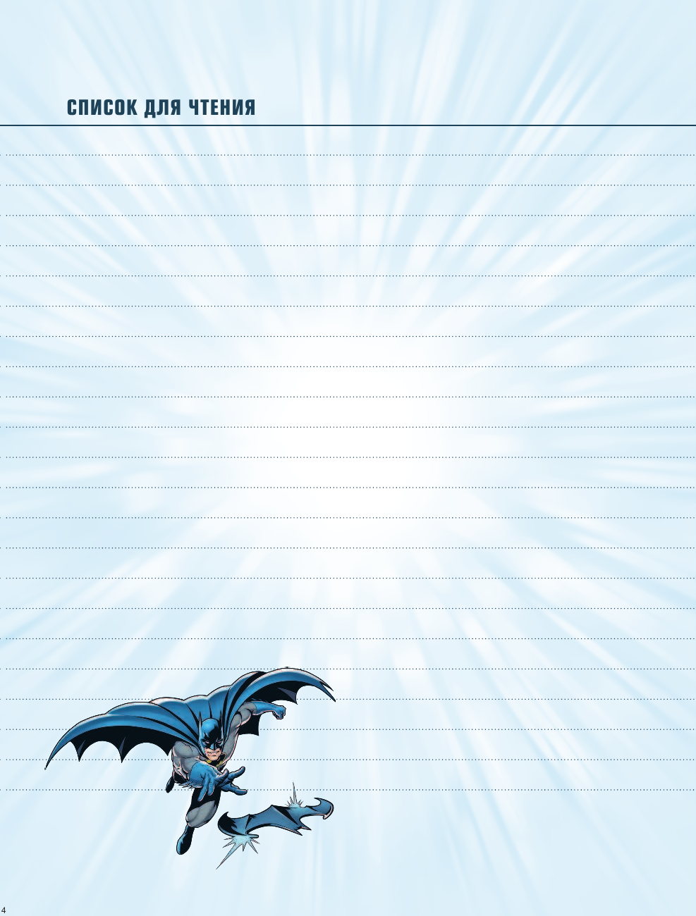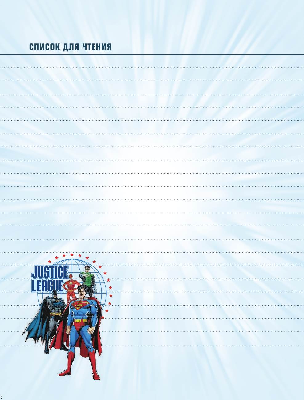 Это необходимый и удобнейший инструмент для твоего списка литературы, который поможет не потерять самое важное! Записывай основные идеи книг, краткое содержание, свои мысли и затраченное на чтение время, описывай понравившихся персонажей — это уникальный способ хранить знания и запоминать прочитанные книги без сверхспособностей. В заполнении тебе помогут любимые супергерои, которые ждут тебя на каждом развороте. Бэтмен, Флеш, Чудо-Женщина, Супермен, Аквамен и Зеленая Стрела — читай в хорошей компании! Выходит в трех оформлениях — выбери свой путь!